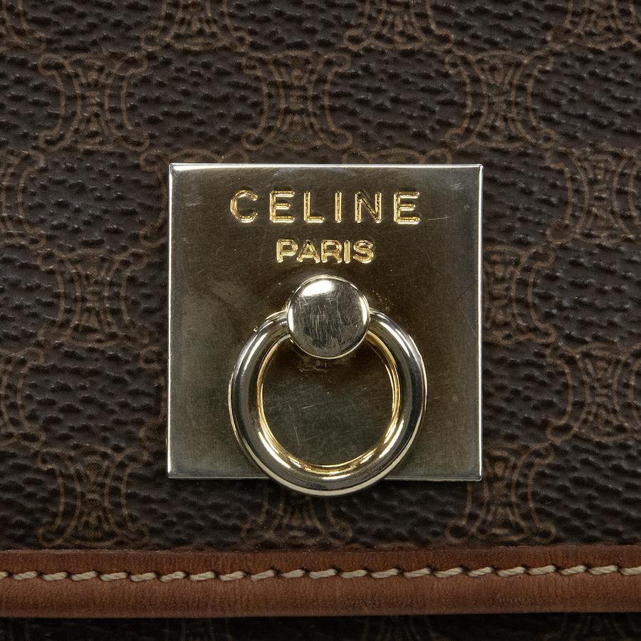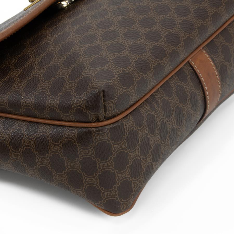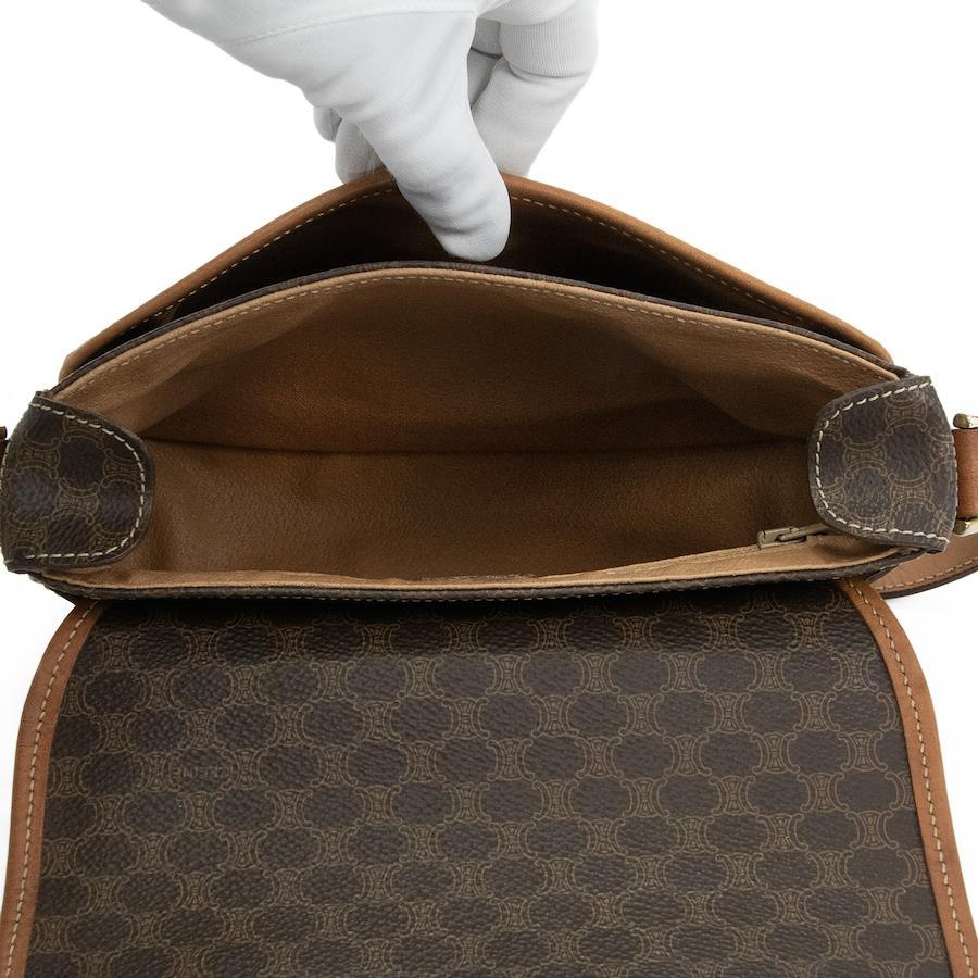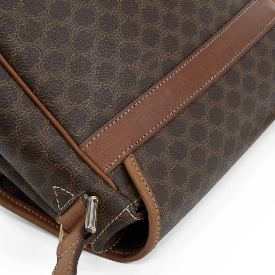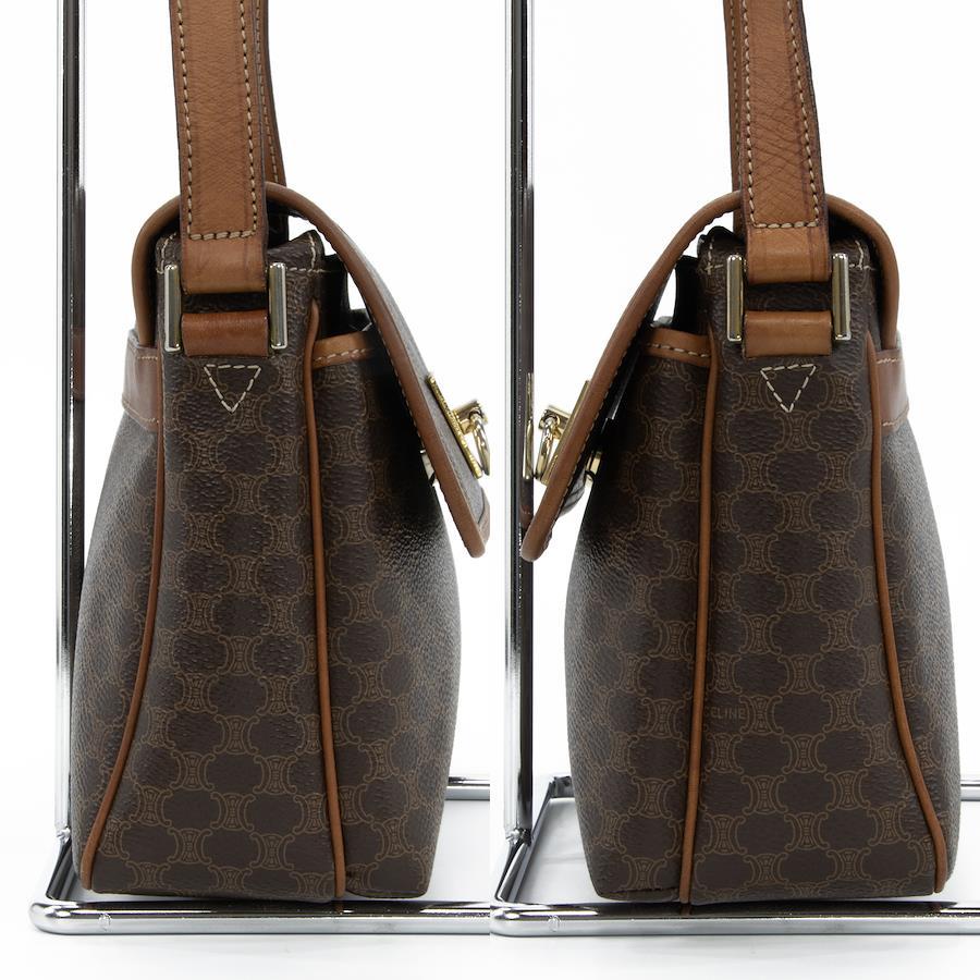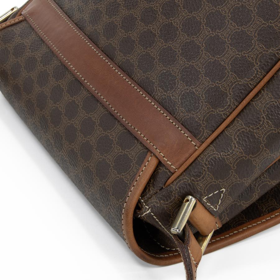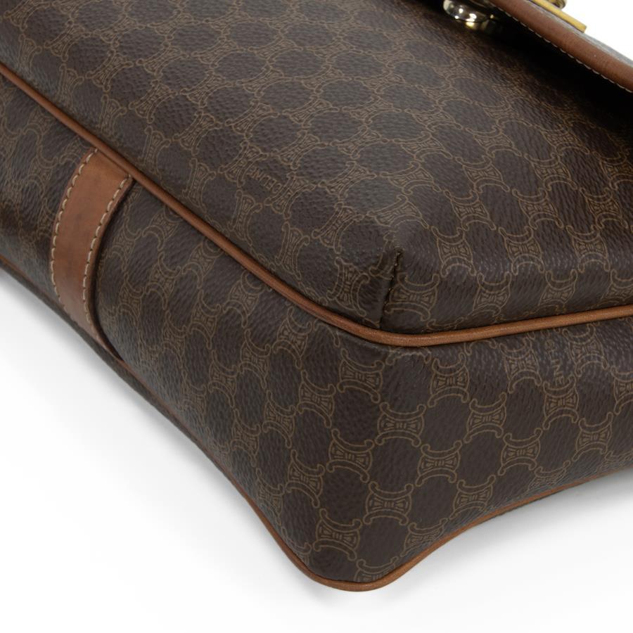 Authentic OLD CELINE shoulder bag/crossbody bag for men and women. Made of coated canvas and natural leather in a rare brown color. Features a unique, small size, all-over pattern, logo, and gold hardware. A beautiful, high-end brand bag. A886