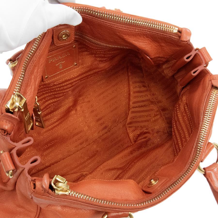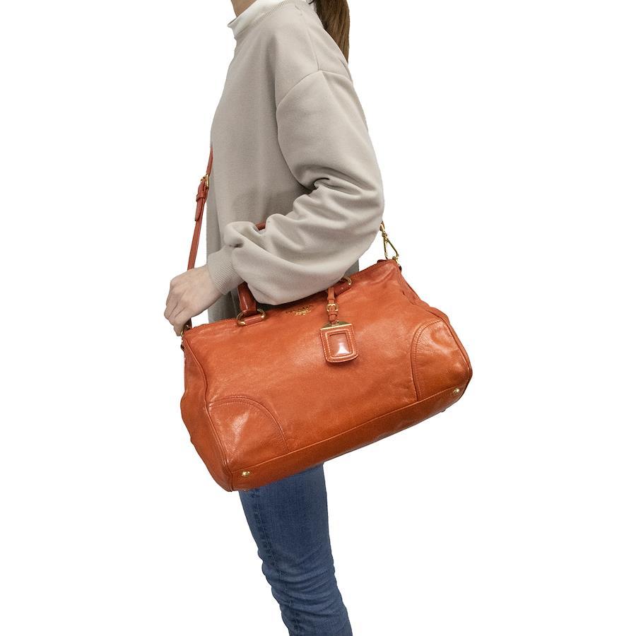 こちらは、鮮やかなオレンジカラーが周囲の視線を惹きつける、プラダのヴィッテロ シャイン・2WAYショルダーバッグでございます。
