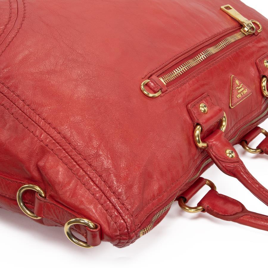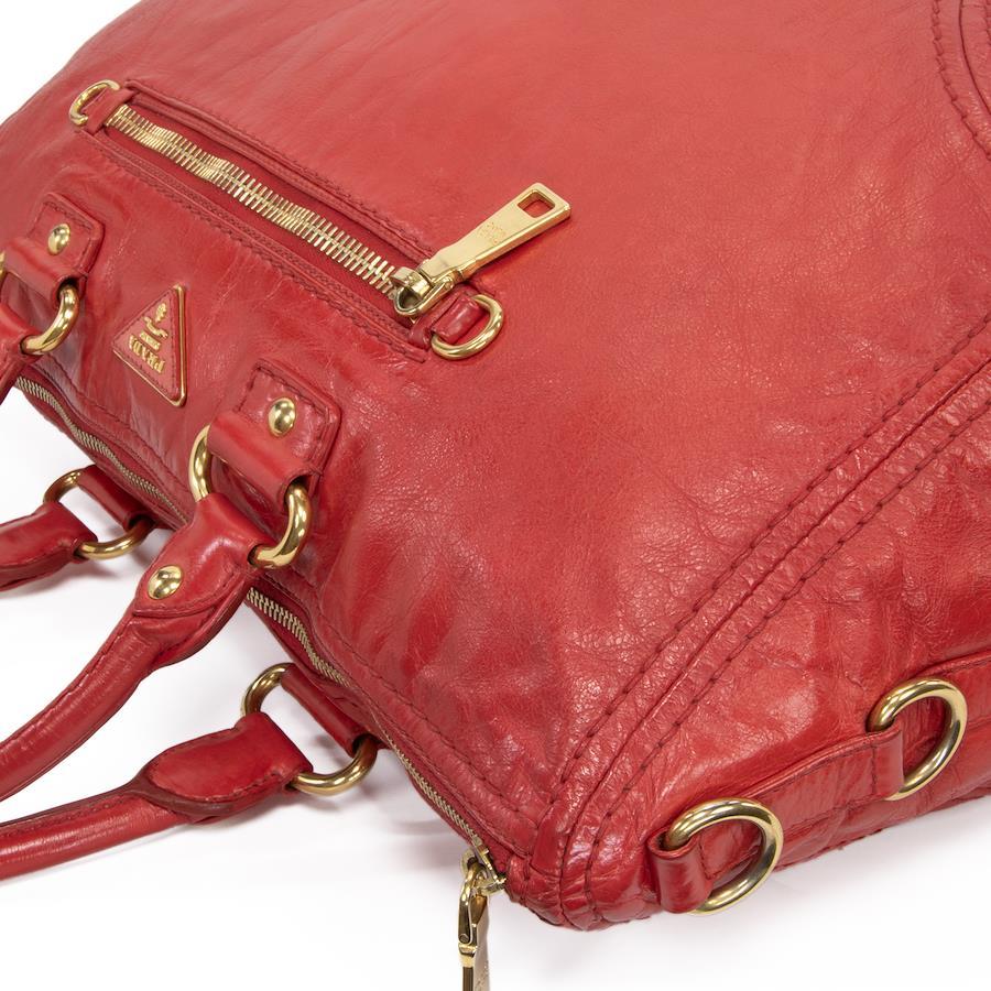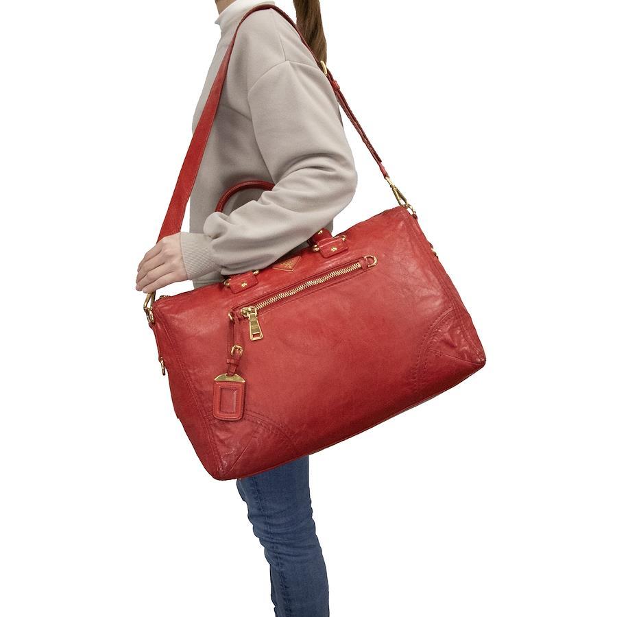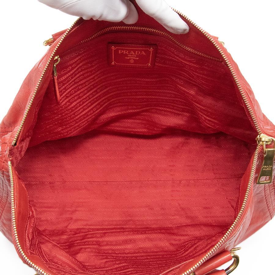 こちらは、鮮やかなレッドカラーが周囲の視線を惹きつけるような、プラダのヴィッテロ シャイン・2WAYショルダーバッグでございます。