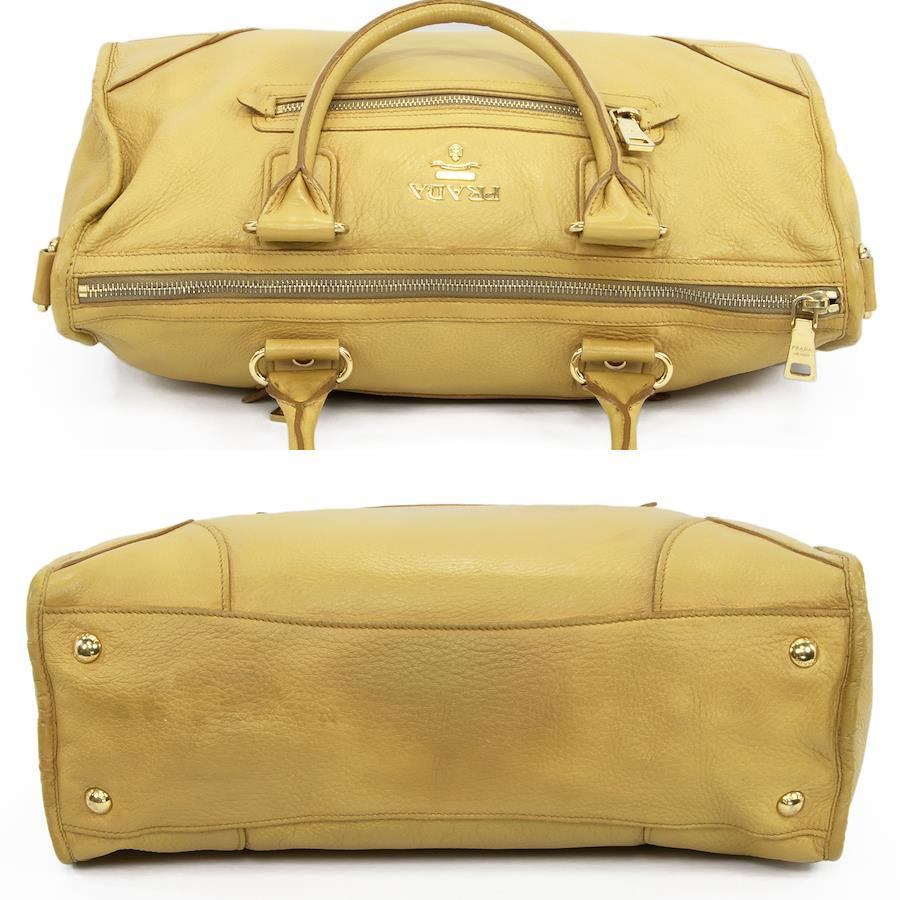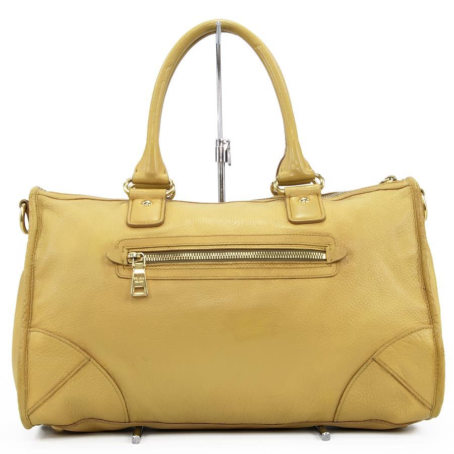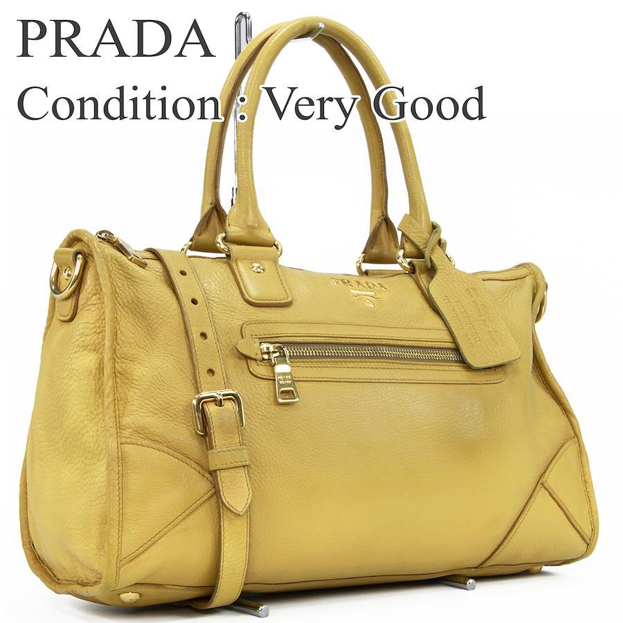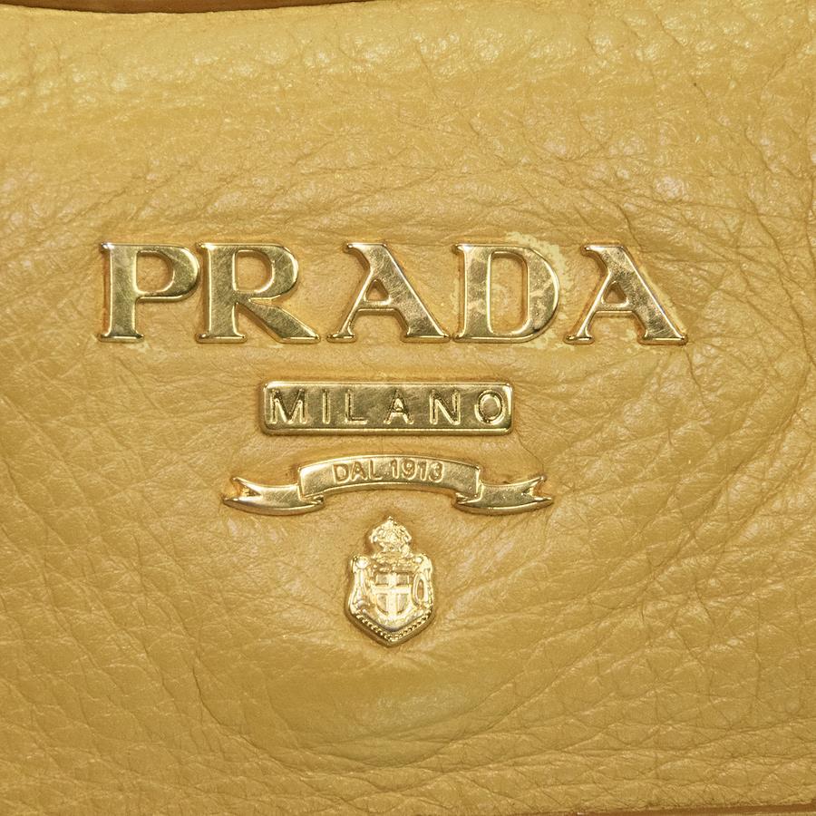 Authentic Prada 2-Way Shoulder Bag/Handbag for Men and Women, Deerskin Cervo Antique Yellow, Rare Model, Shoulder Bag, A4 Size, Logo, Genuine Leather, Beautiful Gold Hardware, High-End Brand, Stylish Bag, E458