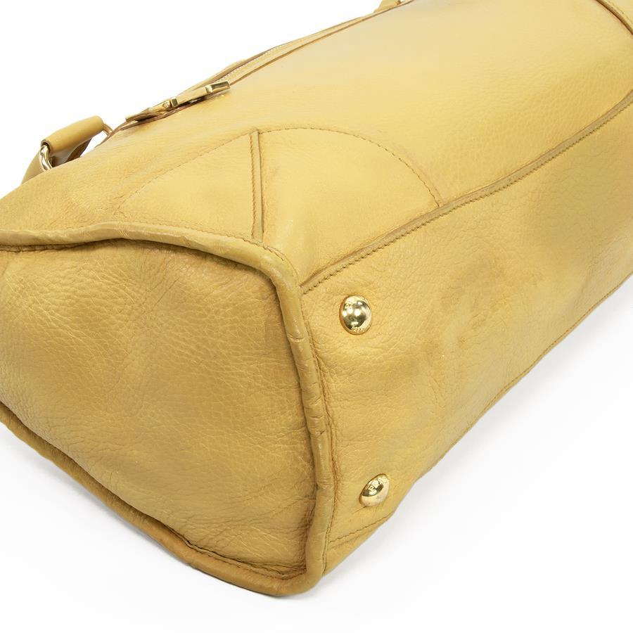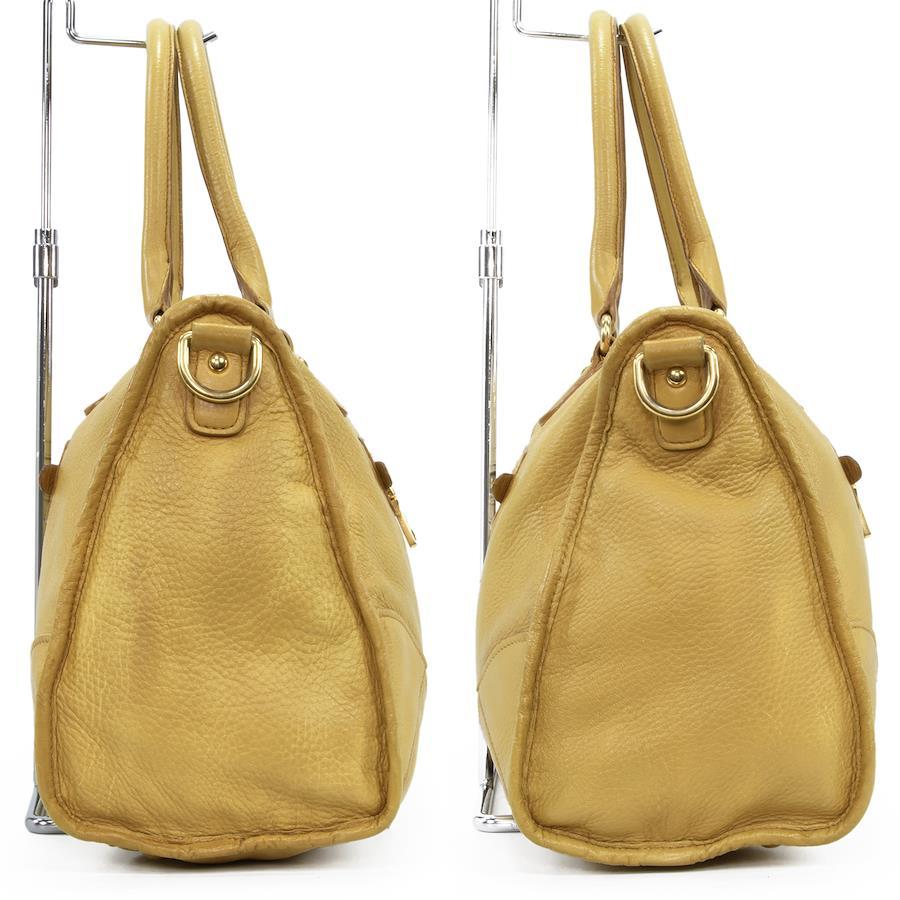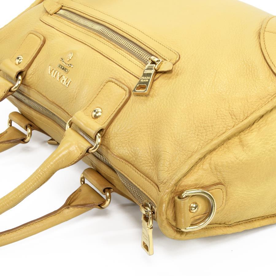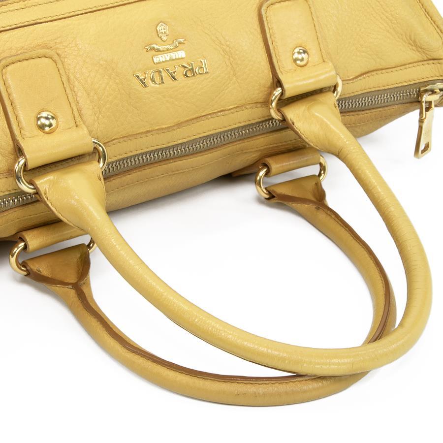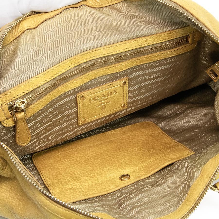 Authentic Prada 2-Way Shoulder Bag/Handbag for Men and Women, Deerskin Cervo Antique Yellow, Rare Model, Shoulder Bag, A4 Size, Logo, Genuine Leather, Beautiful Gold Hardware, High-End Brand, Stylish Bag, E458