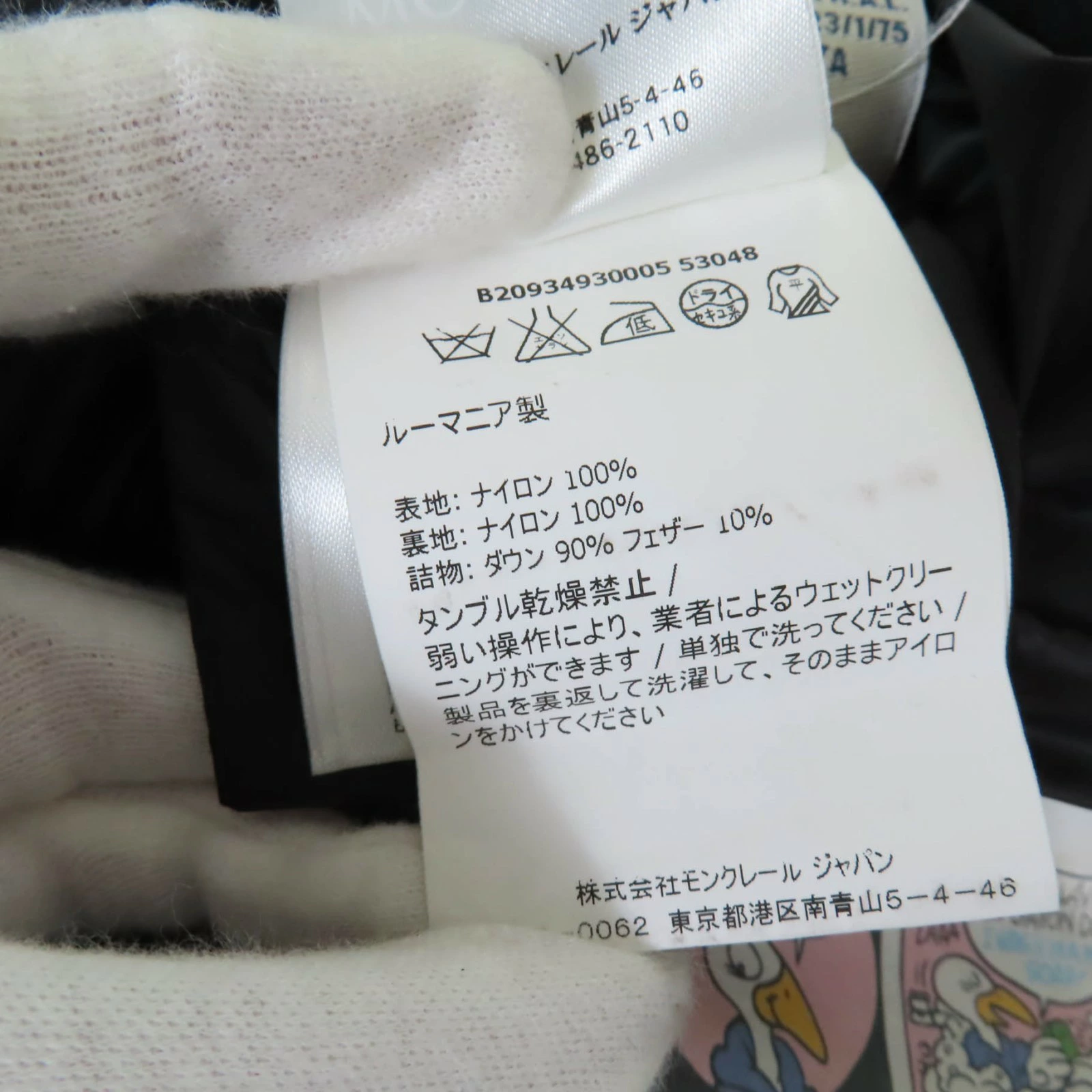 | 素材 (material) | 本体:ナイロン100% 裏地:ナイロン100% 中綿:ダウン90% :フェザー10% | ||||||||||||||||