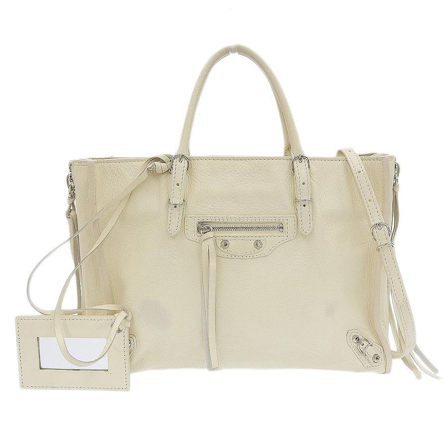 [Authenticity Guaranteed] BALENCIAGA Paper Mini Handbag Shoulder Bag 2WAY Bag Leather Ivory 370926 [Used]