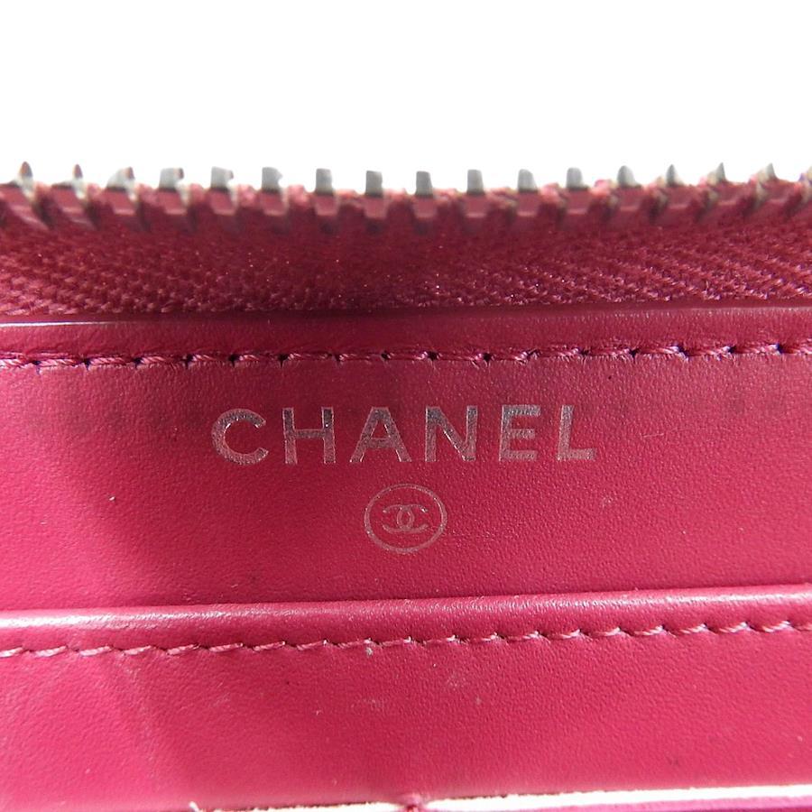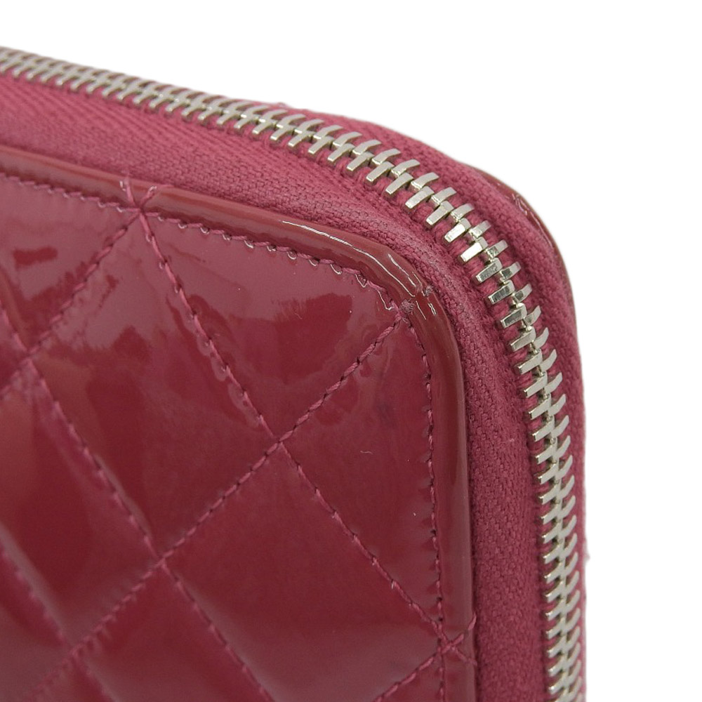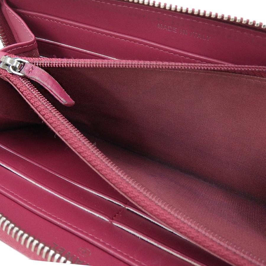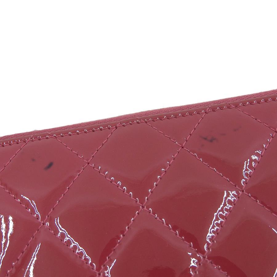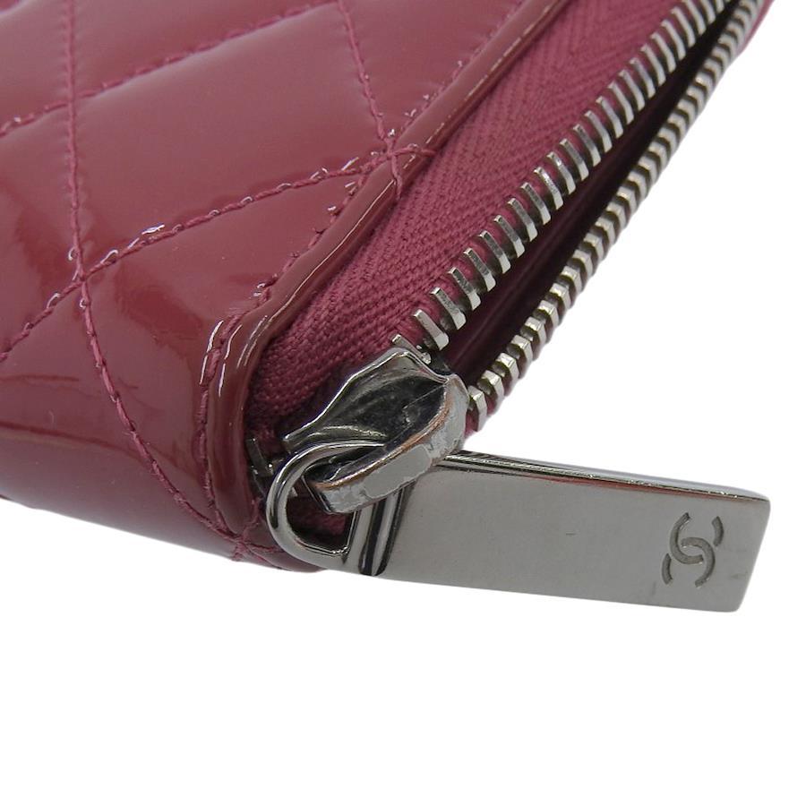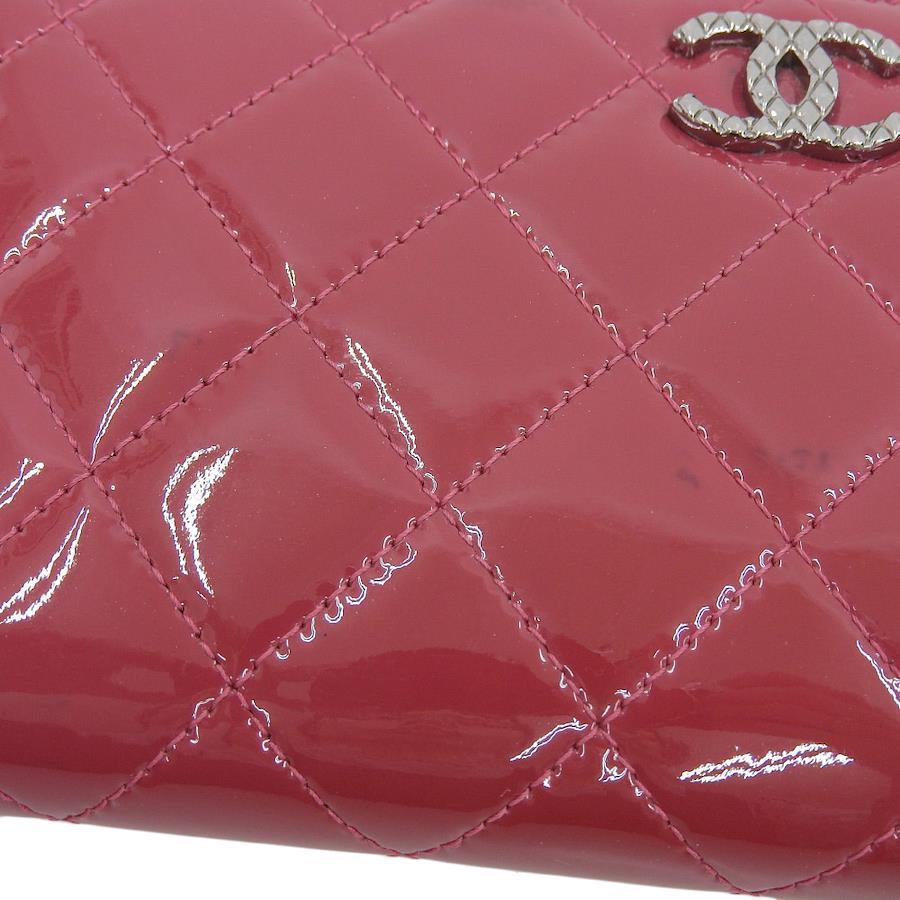 [Authenticity guaranteed] Comes with box, cloth bag and warranty. Chanel Coco Mark logo round zipper long wallet, enamel, pink, with sticker, 22nd series, A50106 [Used]