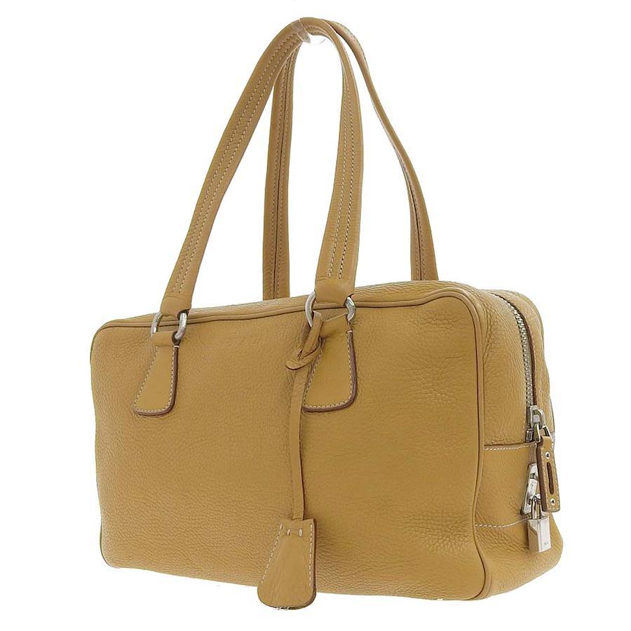 [Authenticity guaranteed] Excellent condition PRADA handbag Boston bag leather camel [Used]