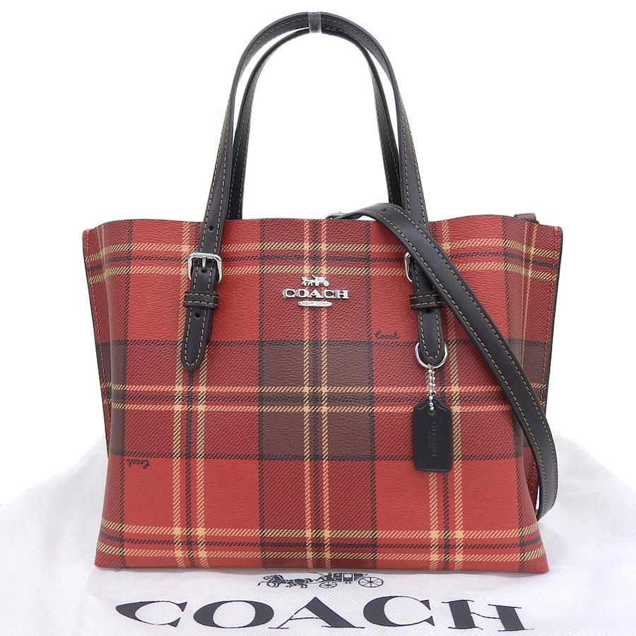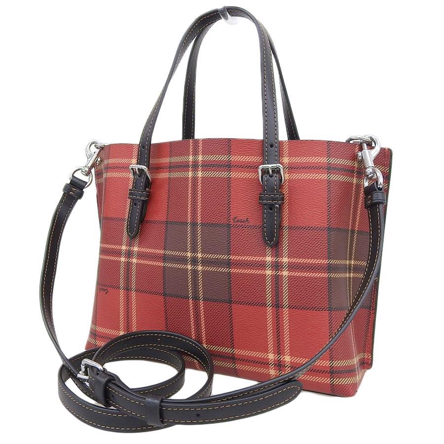 [Authenticity guaranteed] Like new Coach COACH Molly Tote 25 Tartan Check Print Handbag CC874 2WAY Bag Red [Used]