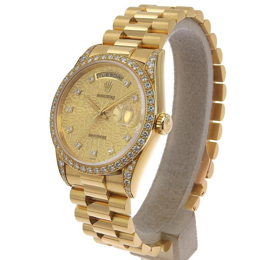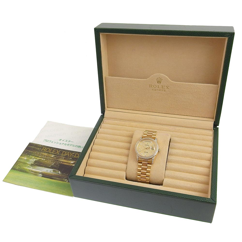 SPEC 商品説明 カテゴリ メンズ腕時計 ブランド ロレックス ROLEX ライン — 商品名 デイデイト 型番 18388A 素材 ケース:K18YG ベルト:K18YG 仕様 動力:自動巻き 風防:ガラス 防水:100m 日差:+1.5秒 動作:あり カラー ケース:金 ゴールド ベルト:金 ゴールド 文字盤:コンピューター サイズ ケース幅:約36mm 腕回り :約17.5cm ブレス幅:約20mm 総重量:約143.4g ランク SA ランク詳細 新品磨き バックルに若干の変色や少々ヨゴレ ブレス裏や裏蓋に軽いスレ フラッシュフィット付近に少々変色 付属品 内箱 ※記載のないものは原則付属は御座いません。 参考価格 — 超音波洗浄済 tkh22B1110002 お問い合わせの際に、こちらの番号をお伝えください。 本 社