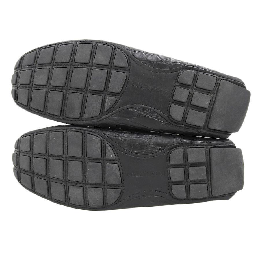[Authenticity Guaranteed] Louis Vuitton Monte Carlo Line Loafer Driving Shoes LV Logo Caiman Shoes Crocodile Black Size 7 [Used]