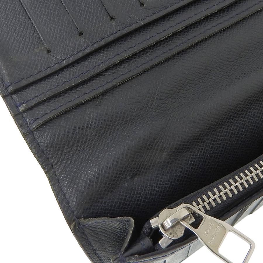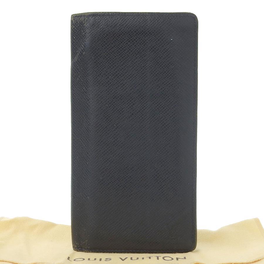 [Authenticity guaranteed] Louis Vuitton Taiga Portefeuille Brazza Bi-fold Long Wallet Ardoise M32572 with cloth bag [Used]