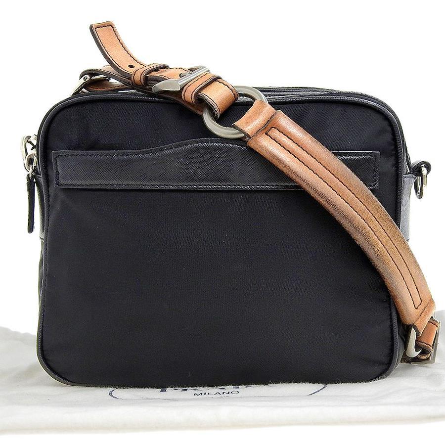 [Authenticity guaranteed] PRADA 2-way bag with cloth bag, clutch bag, one-shoulder bag, nylon, leather, black [Used]