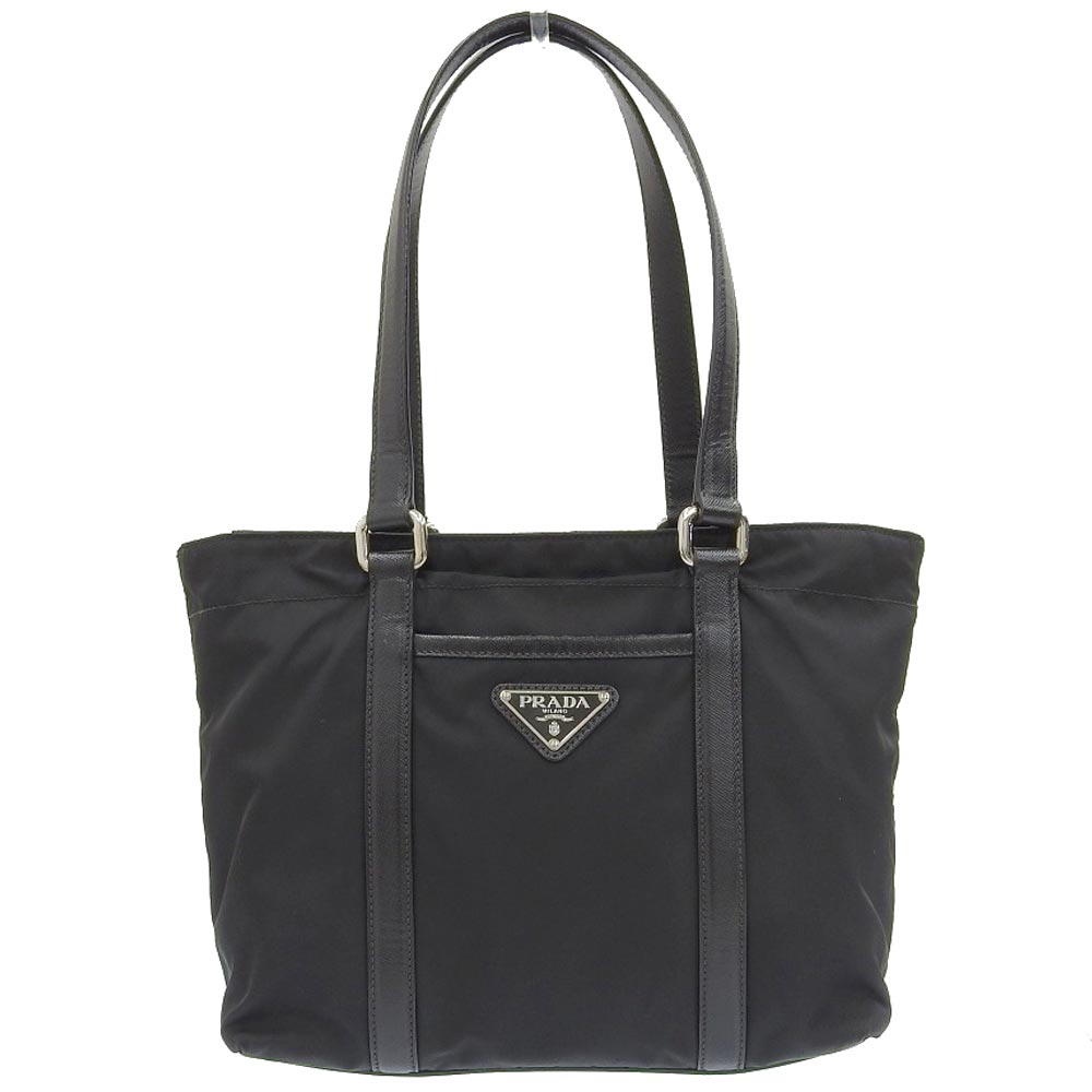 [Authenticity Guaranteed] Prada Nylon Handbag Black BR2288 Triangular Plate Lightweight Rare [Used]