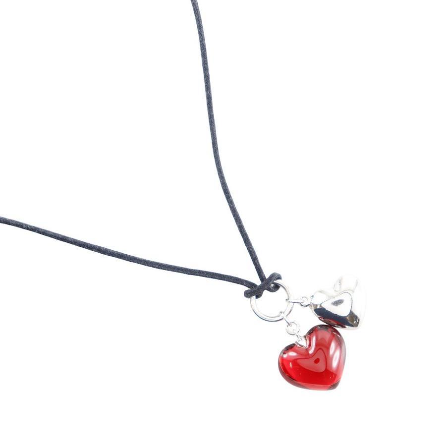 Baccarat Double Heart Choker, Sterling Silver 925 x Crystal, Red, Approx. 9.5g