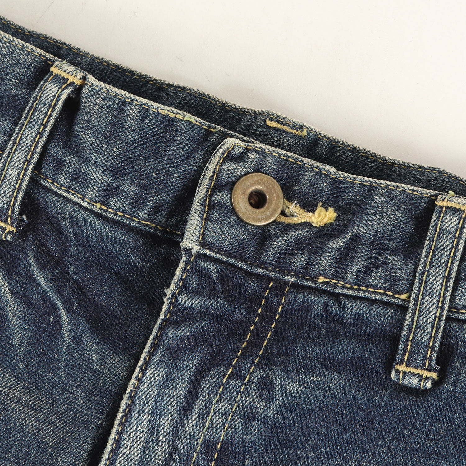 | 商品説明 | ・伸縮性のあるしっかりとしたコットンデニム生地 ・ヴィンテージ加工 ・立体裁断によるスリムシルエット ・やや股上の深いデザイン ・フロントジッパーフライ |