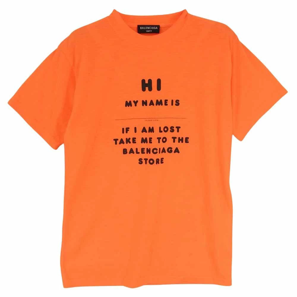 BALENCIAGA 20AW 661705 TKVH5 Logo T-Shirt, Orange, Message Print, Men's, Size XS [Pre-owned]