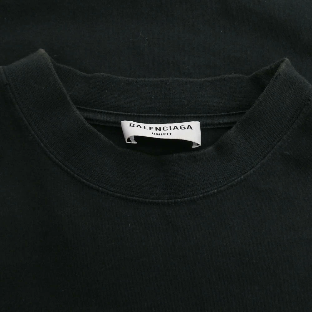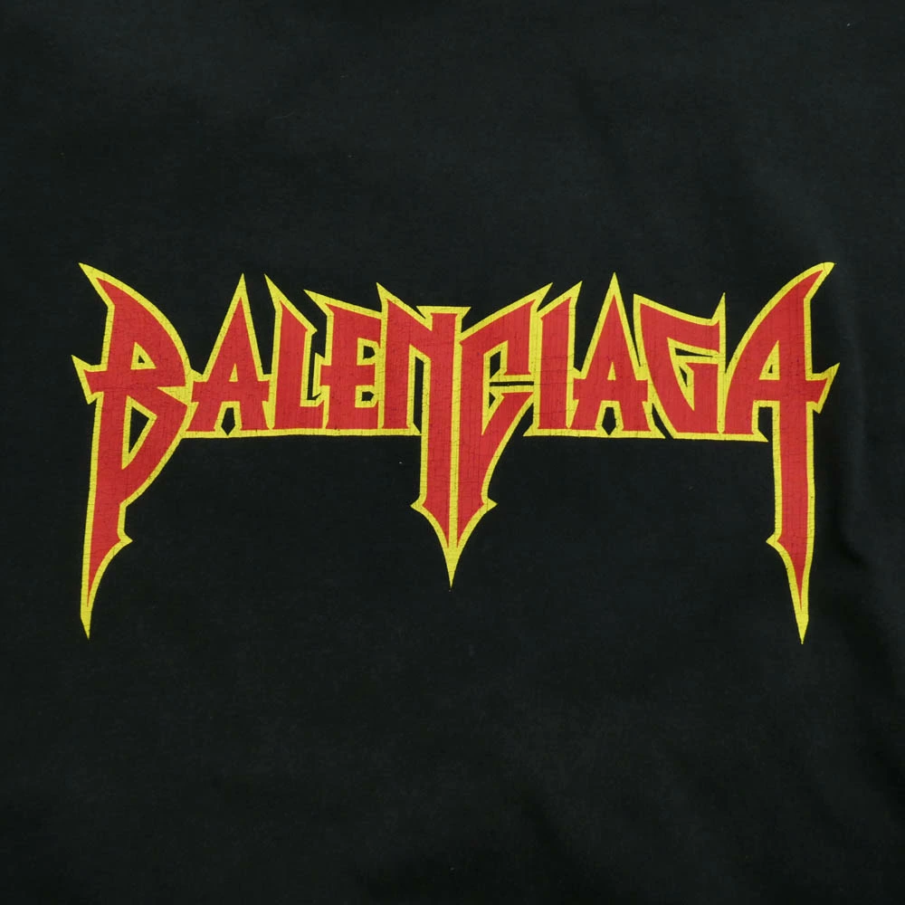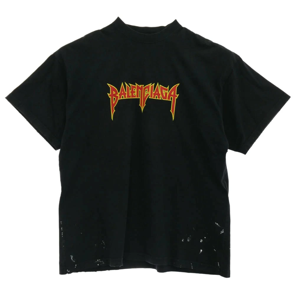 BALENCIAGA 22SS 694576 TMV88 METAL LOGO CRASHED SS TEE, Crushed Metal Logo, Painted, Short Sleeve, Black, Men's [Pre-owned]