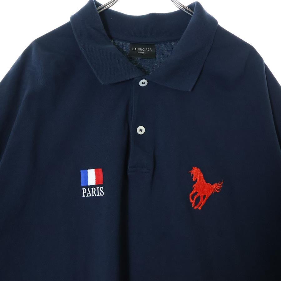 [モデル]24SS Paris Horse Polo Shirt パリスホース刺繍 ダメージ加工半袖ポロシャツ 791001 TQVM6 ネイビー