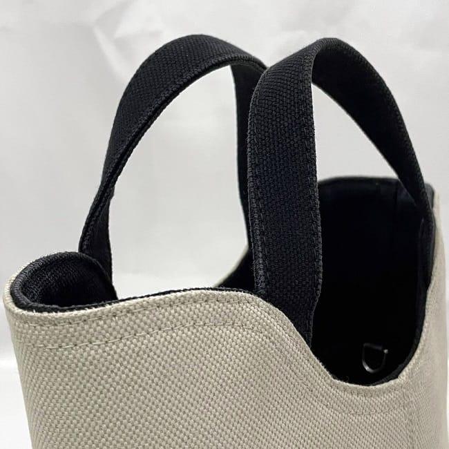 バレンシアガ 2way バッグ ウェーブ XS ショルダーバッグ f-22935 ナチュラルホワイト ブラック 619979 美品 キャンバス レザー 中古 9260 U 002123 BALENCIAGA バケット 白 自立 ロゴ ハンドバッグ クロスボディ レディース 斜め掛け ブランド 本物 鑑定済