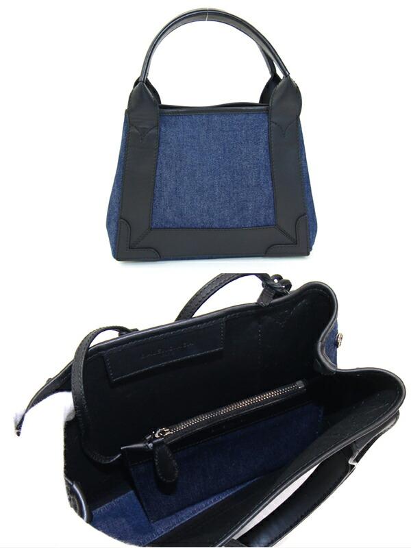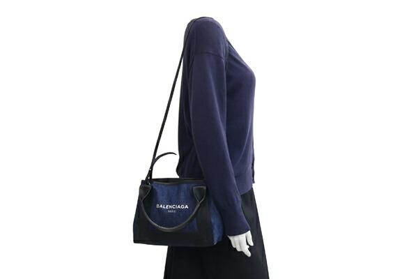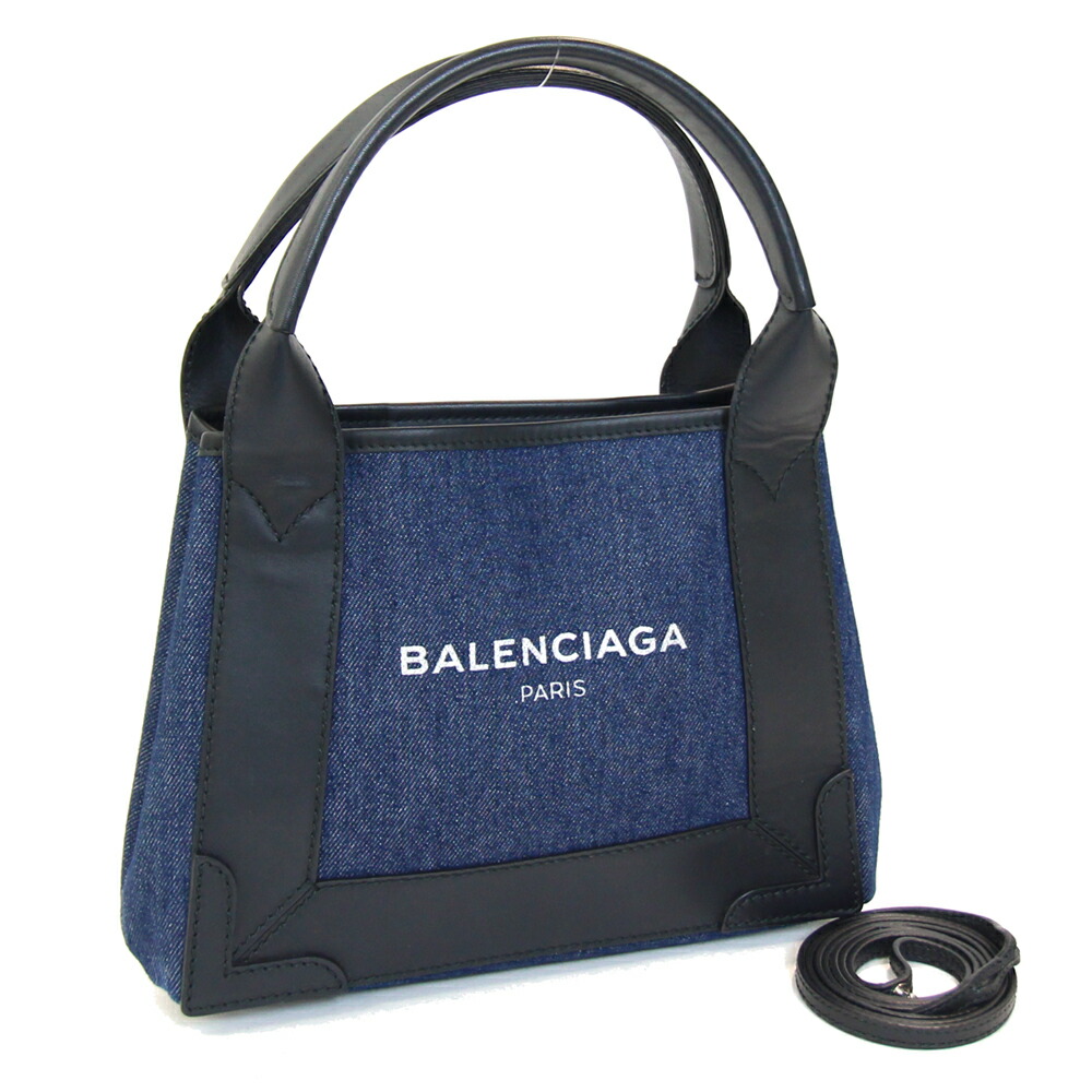 バレンシアガ2WAYハンドバッグネイビーカバスXS390346ブルーブラックデニムレザー中古ショルダーバッグ斜め掛けロゴポーチ付レディースBALENCIAGA