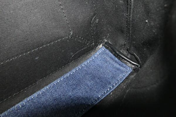 状態:外側:レザー部分小キズ、薄スレあり。底角はスレによる色褪せあり。ハンドルは外側への倒れクセあり。ショルダー調節穴に亀裂あり。内側:スレ、薄汚れあり。金具:スレ、クスミあり。