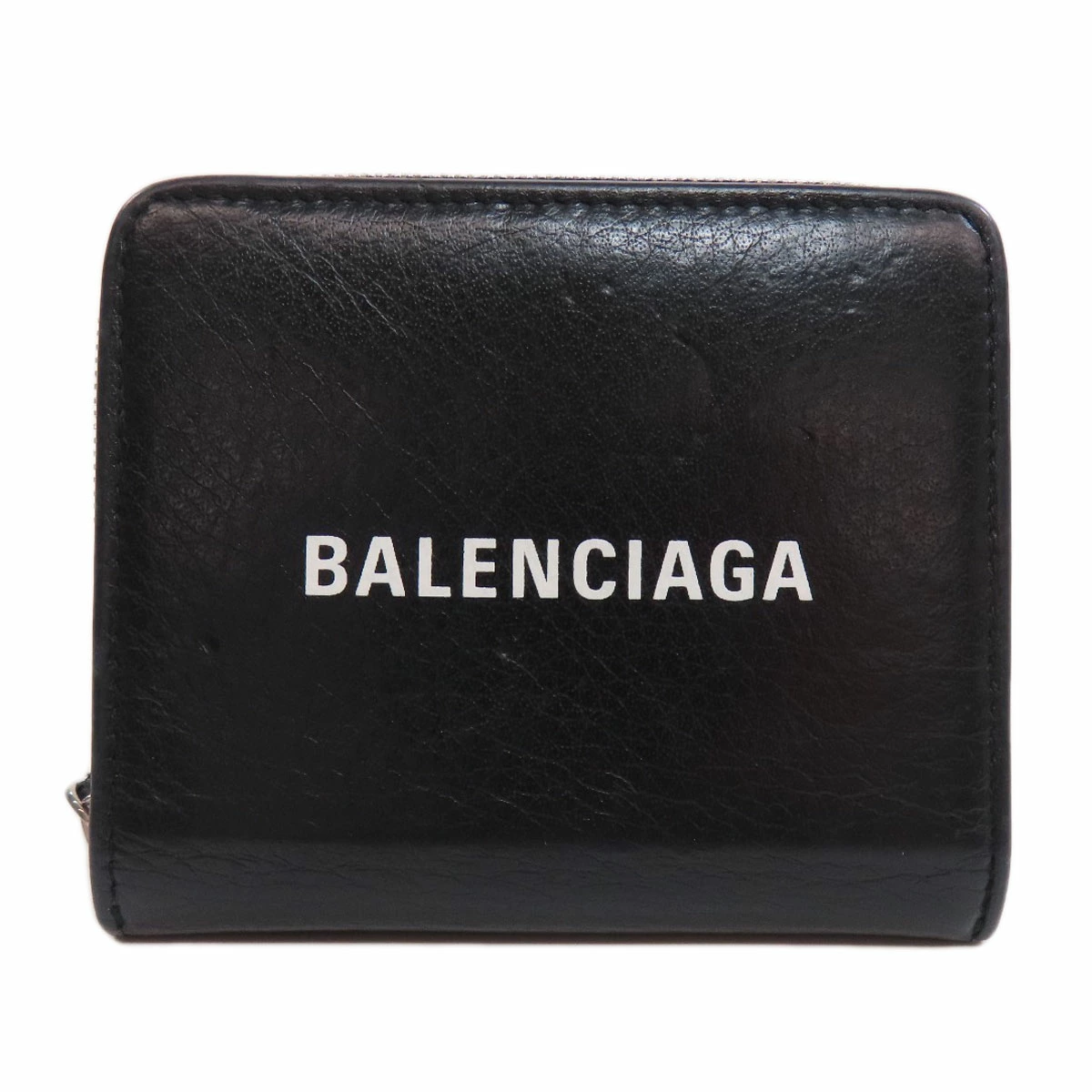 レディース二つ折り財布(小銭入れあり)BALENCIAGAカラー:ブラック系レザーコンディションAB+(ABプラス)ランク