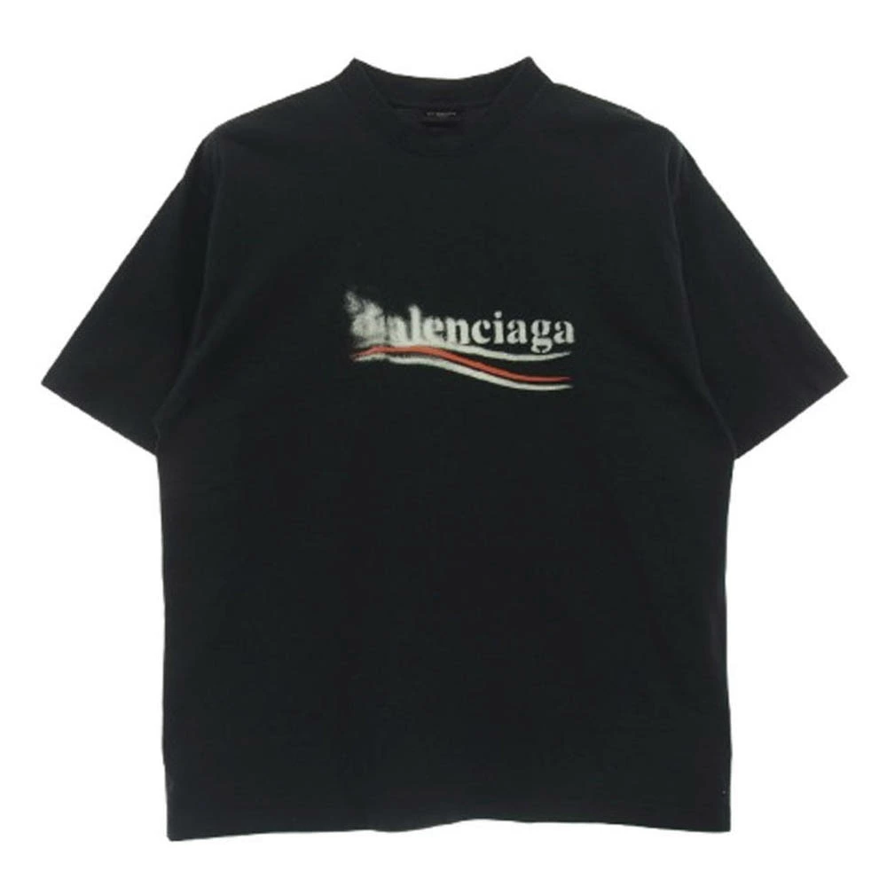 BALENCIAGA 764235 TQVI5 Political Stencil T-shirt with campaign logo print, short sleeves, black, size L, men's [pre-owned]