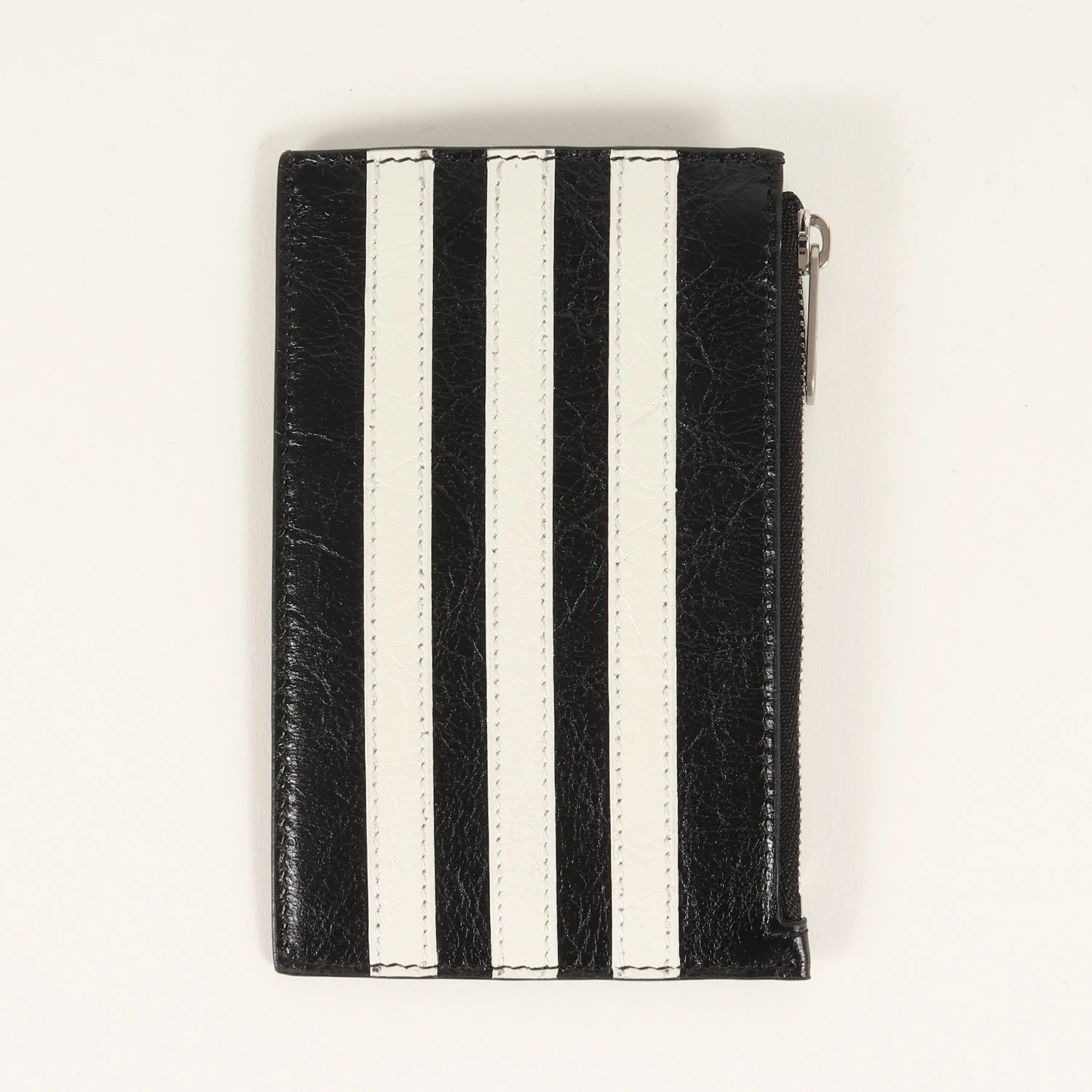 | 商品説明 | 独特の光沢のある上質なレザー素材を使用し、フロントにコラボレーショントレフォイルブランドロゴ、バックにスリーストライプデザインがあしらわれたカードケースです。 仕様 カードスロット×6 フリーポケット×1 ファスナー式コインクロージャー×1 |