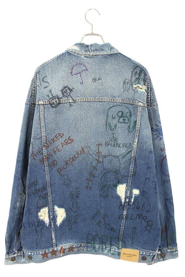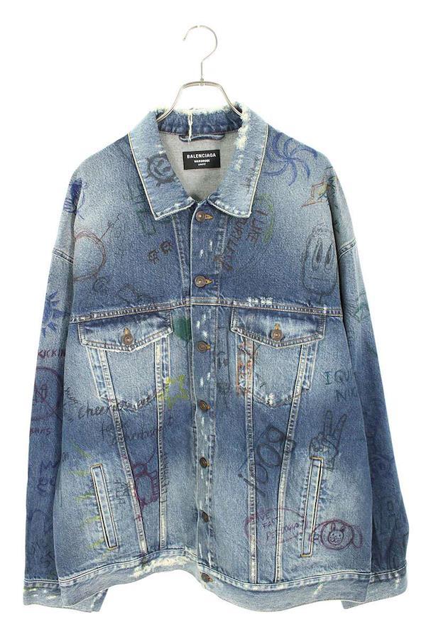 Balenciaga BALENCIAGA Size: 2 22SS 694503 TBP48 Distressed Graffiti Oversized Denim Jacket