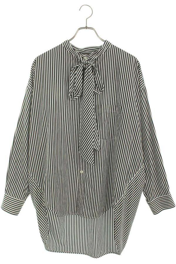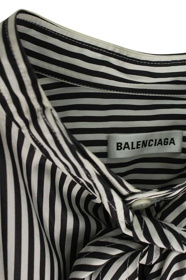 Balenciaga BALENCIAGA<br>Size: 34 520497 TDM09 Back Logo Bow Tie Striped Long Sleeve Shirt (White and Black) [216052] [BS99] [Women's] [Pre-owned] bb87#rinkan*B
