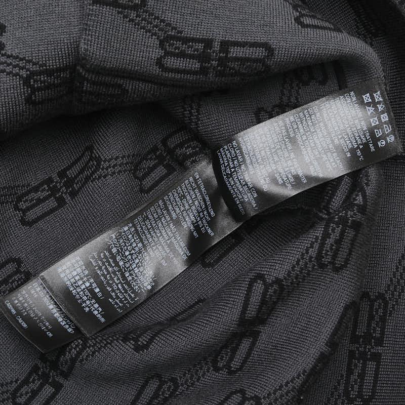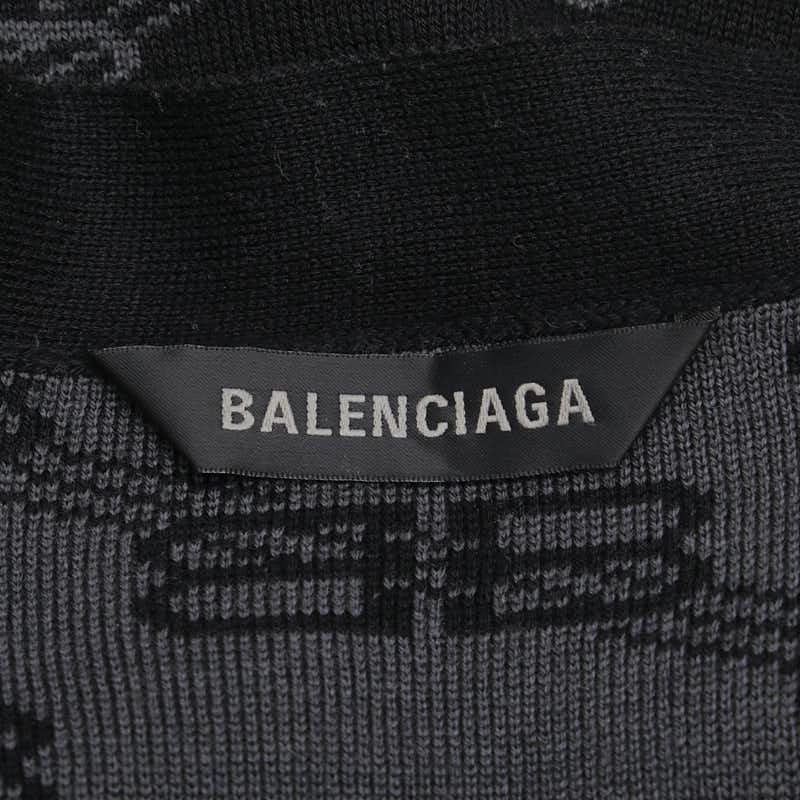 Balenciaga BB Logo Cardigan, Size 2, Black/Grey, Cotton/Wool/Polyester, Men's, Pre-owned