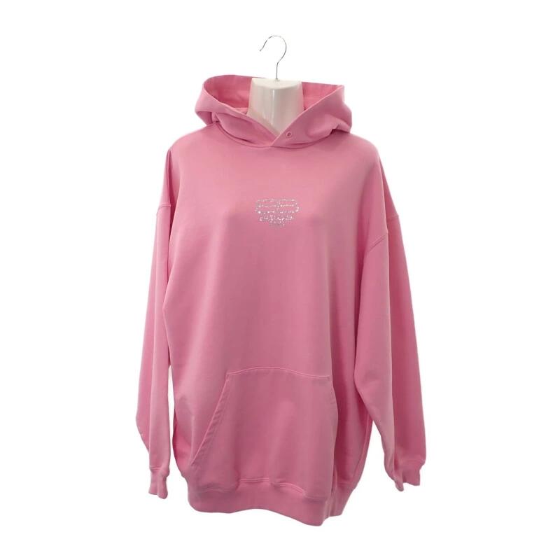 明るいピンクのカラーリングとフロントのラインストーンによるBBロゴが目を惹くコットンパーカー。