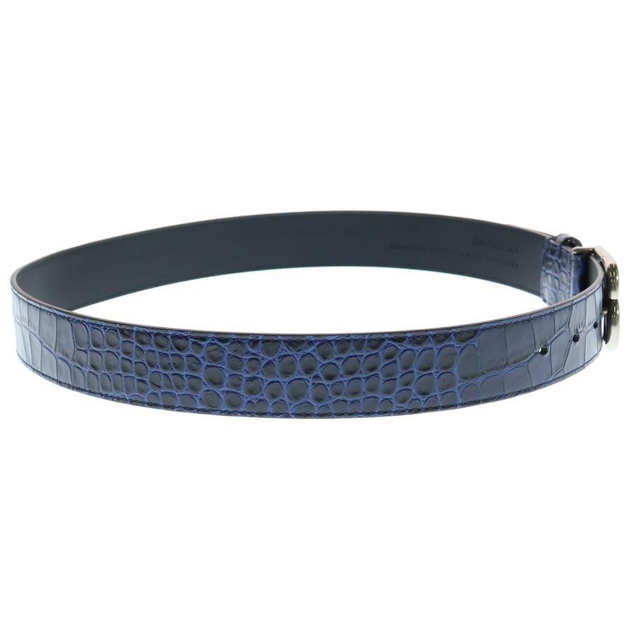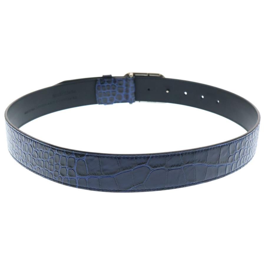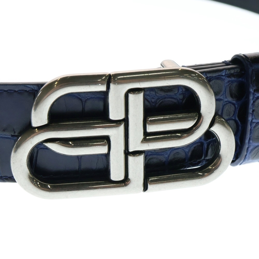 [モデル]BBロゴ シルバーバックル クロコダイル柄 レザーベルト パープル 570370