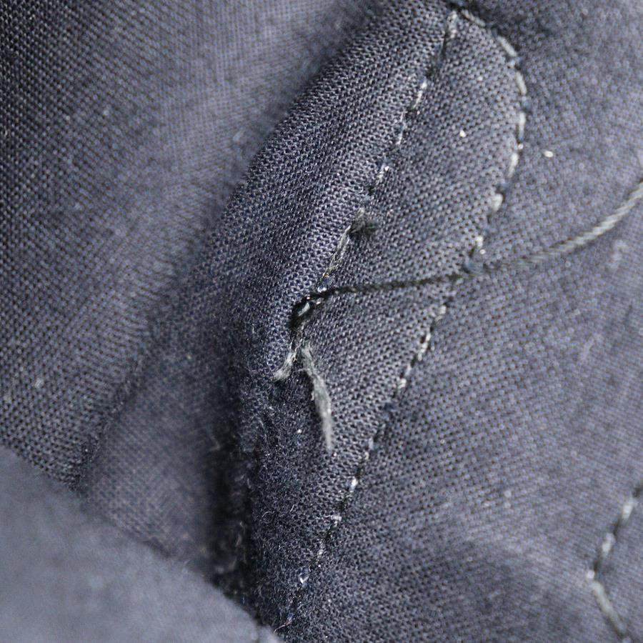 底部分、パイピングのレザーが変形しております。ポーチが欠損しております。