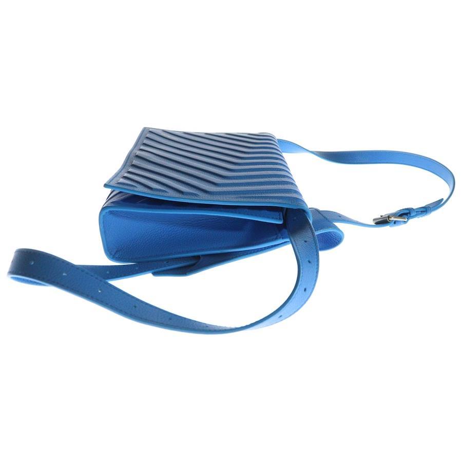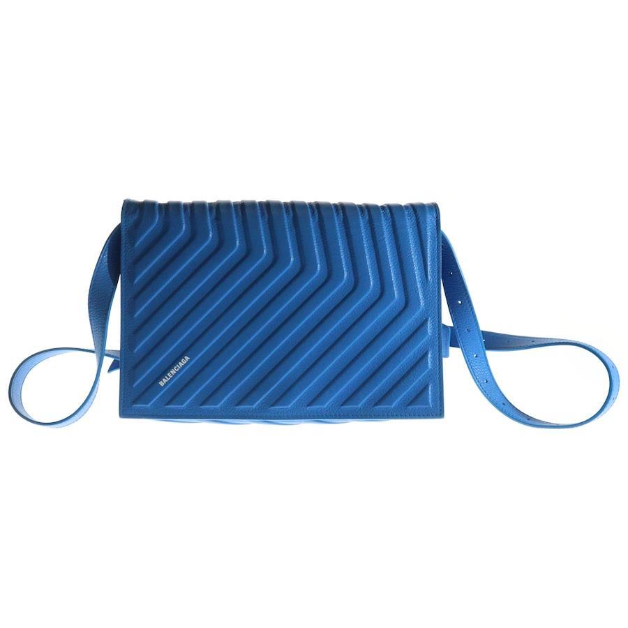 [モデル]CAR FLAP BAG W カー フラップ エンボス レザー ショルダーバッグ ブルー 679466