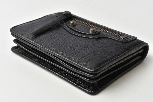 バレンシアガより、カードケースです。独特のシワ加工を施した手触りのよいレザーで、高級感があります。人気のクラシックモデルに、スタッズが印象的です。デザインだけではなく、機能性が高く、使いやすさに定評があります。