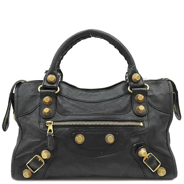 ▲クリックで拡大されますバレンシアガ BALENCIAGA 2WAYバッグ ジャイアント シティ レザー ブラック ハンドバッグ ショルダー 肩掛け ミラー付き ゴールド金具 173084 レディース 【保存袋】 【中古】