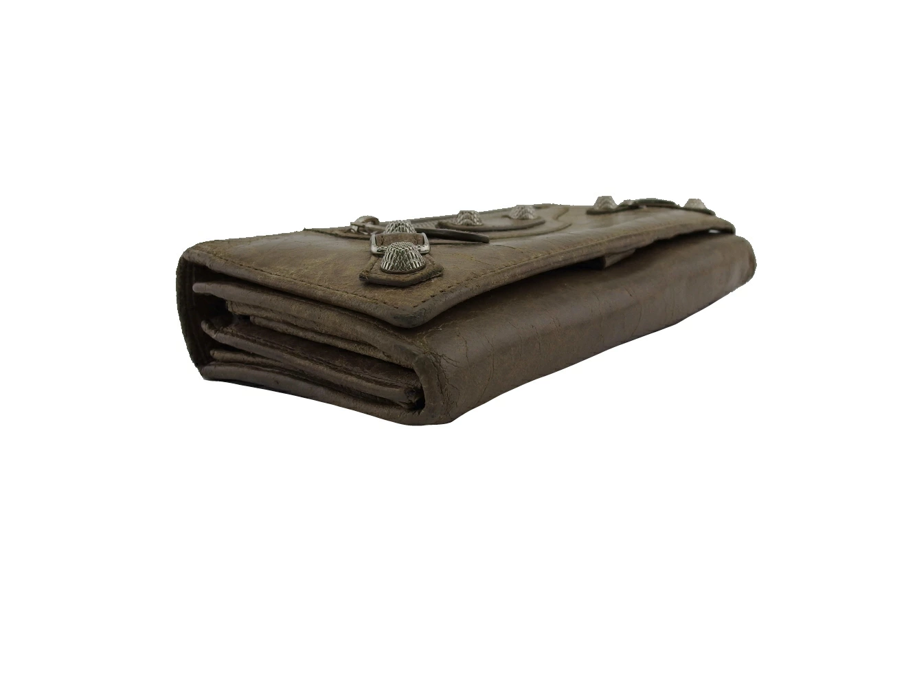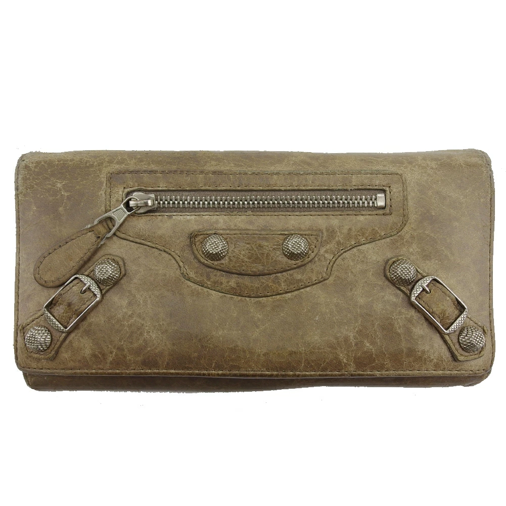 Balenciaga Giant Continental long wallet in beige and gray, women's, pre-owned.