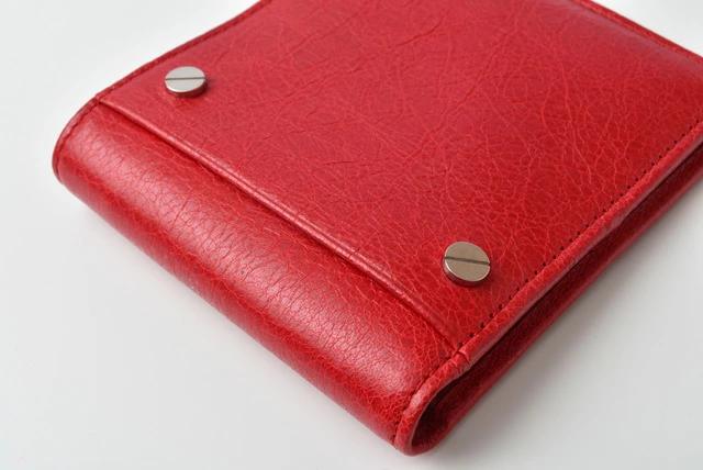 バレンシアガより、メンズ向け札入れ/折財布です。独特のシワ加工を施した手触りのよいレザーで、高級感があります。人気のクラシックモデルに、ビスが印象的です。