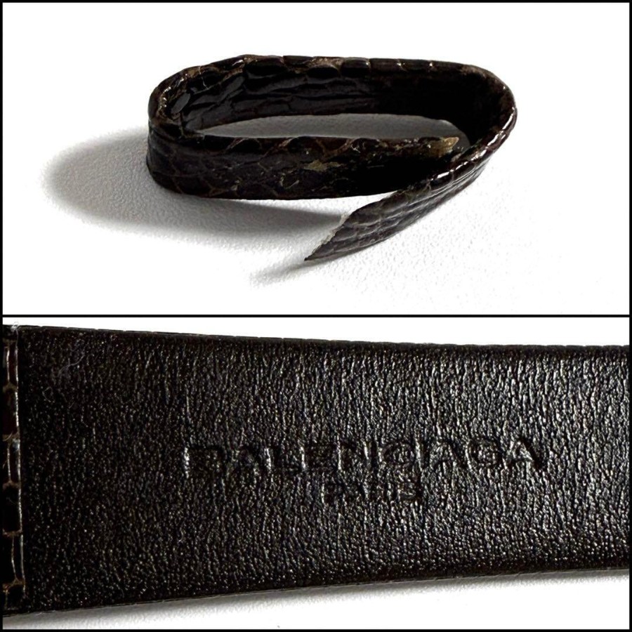 ・画像掲載の通り、ベルトのループ(遊環)が1つ、破損しています。気になる場合は、ご自身にて縫い付け修理またばベルト交換をご検討ください。