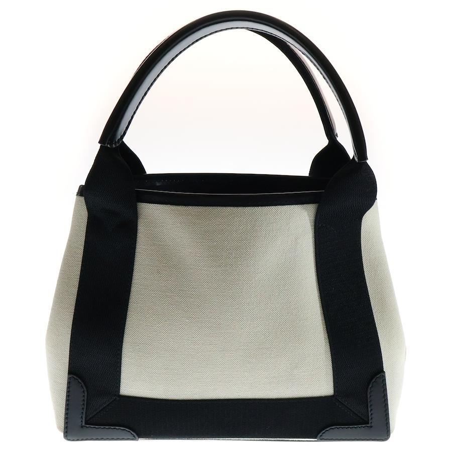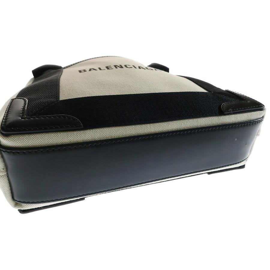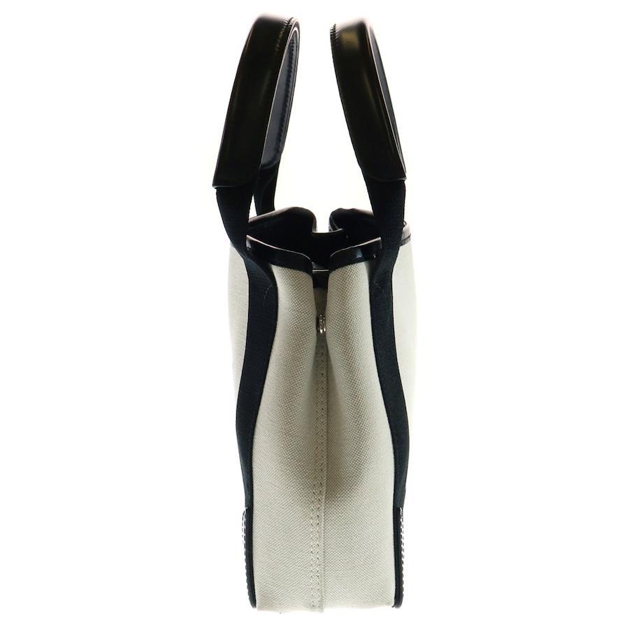[モデル]ネイビーカバスXS 2WAYバッグ ミニトートバッグ ハンドバッグ ショルダーバッグ ホワイト×ブラック シルバー金具 キャンバス×レザー 390346