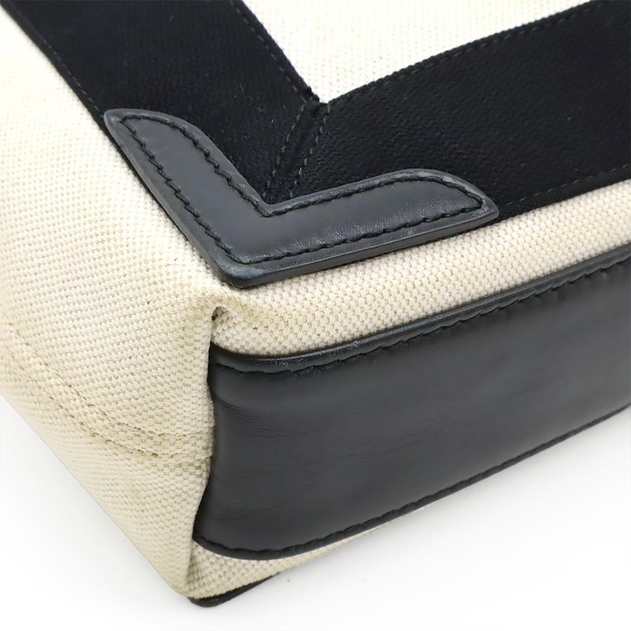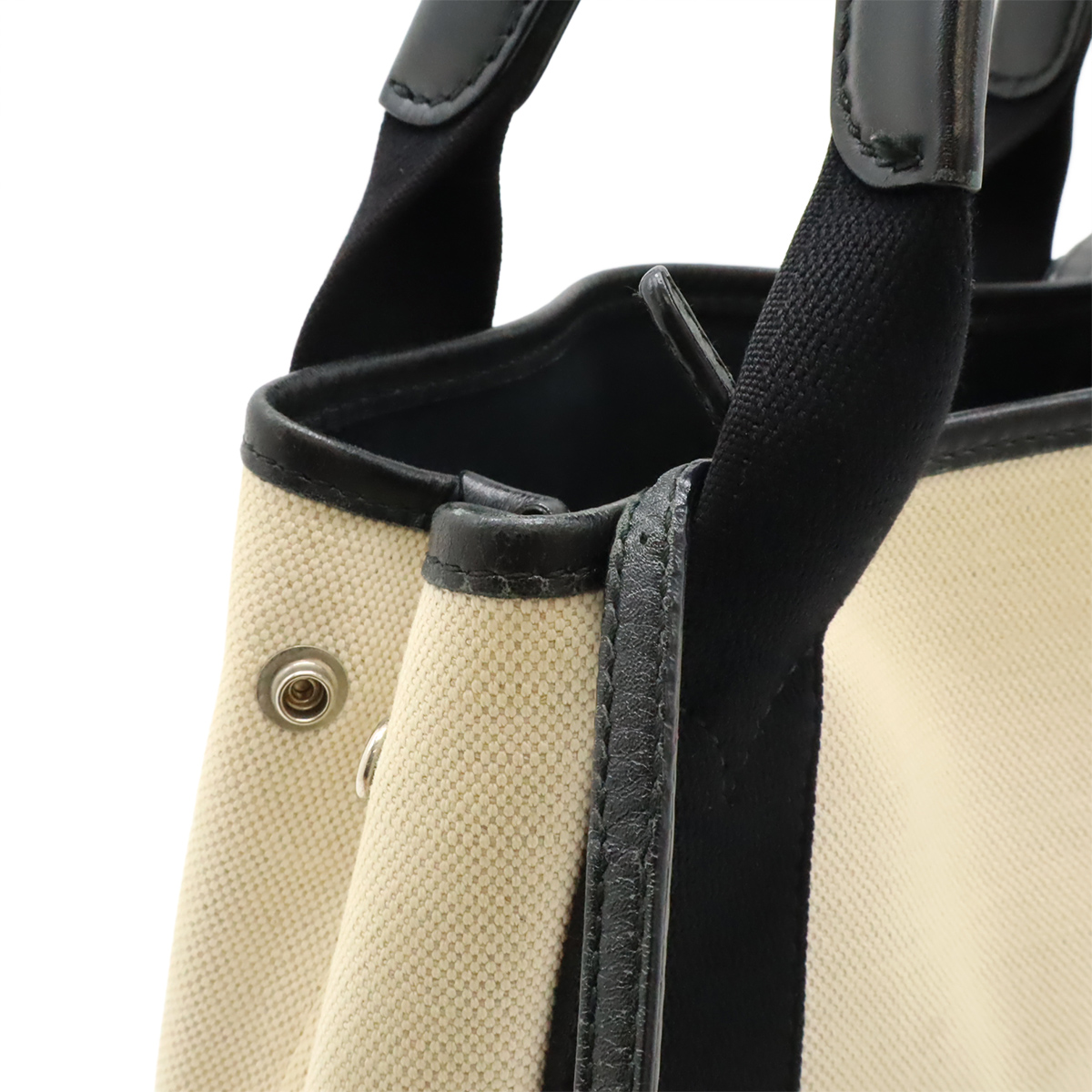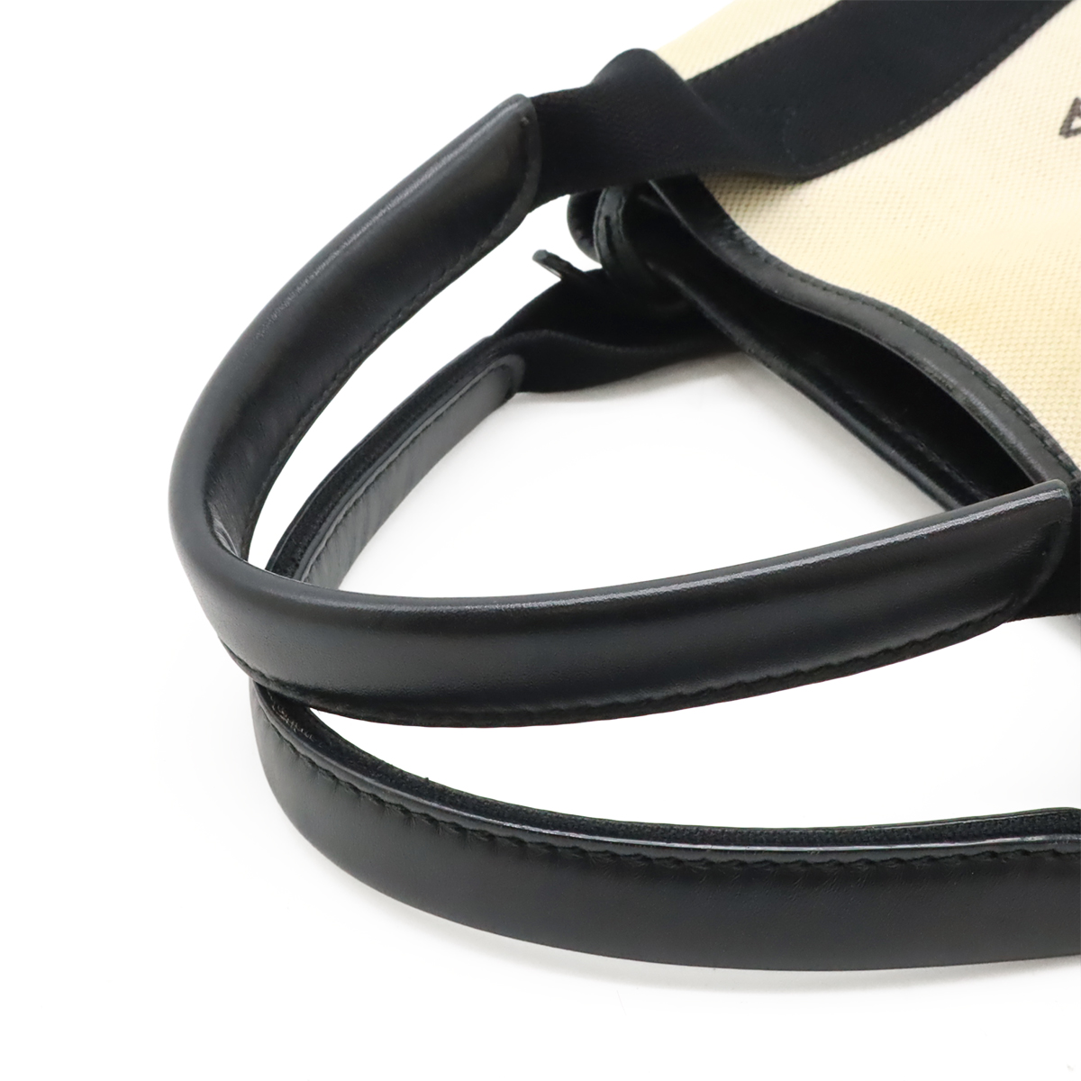 キャンバス地にさりげないレザー使いが効いたハンドバッグ。