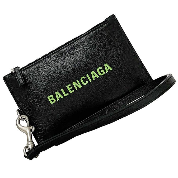 バレンシアガ パスケース ec-23506 ブラック 616015 美品 レザー 中古 1063 T 584046 BALENCIAGA カードケース 黒 ファスナー ポーチ コインケース ストラップ付 ファスナー ロゴ 箱付き メンズ レディース 定番 人気 シンプル ブランド 本物 鑑定済み