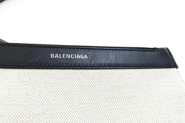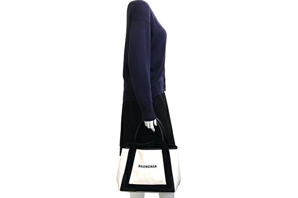 Balenciaga Small Cabas Tote Bag, Navy, 339933, Ivory/Black Canvas and Leather, Pre-owned, Shoulder Handbag, Logo, Pouch Included, Women's, BALENCIAGA