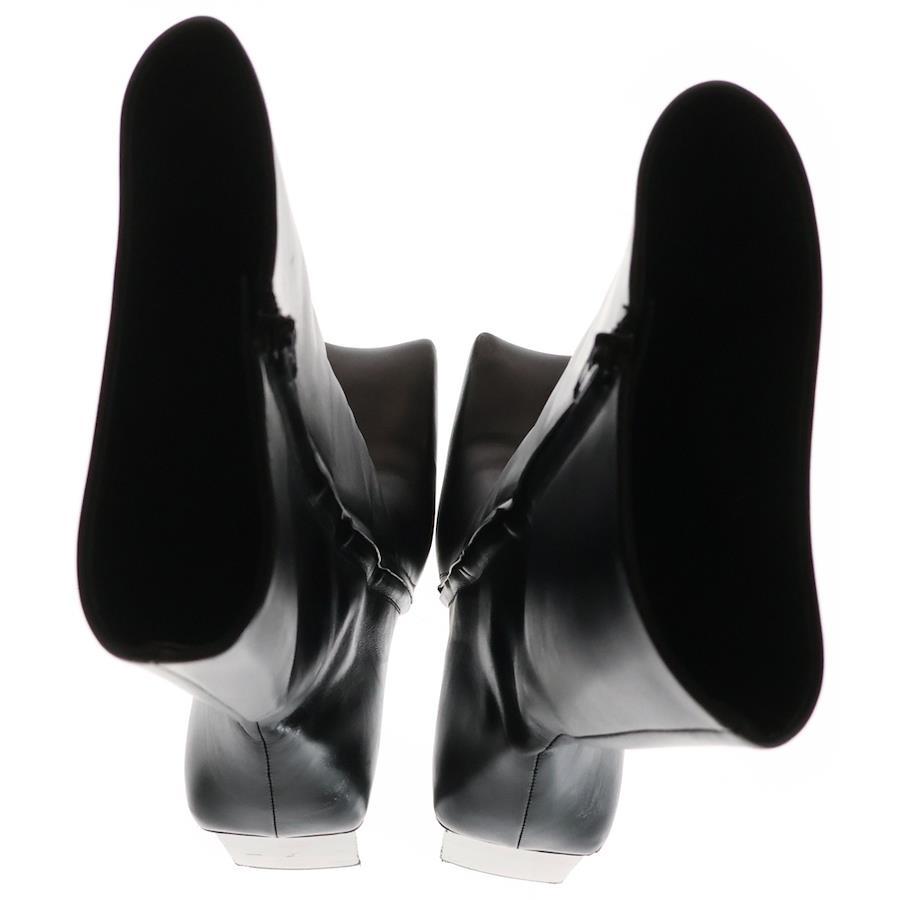 [モデル]スクエアトゥ レディース レザー ショートブーツ ブラック 615761