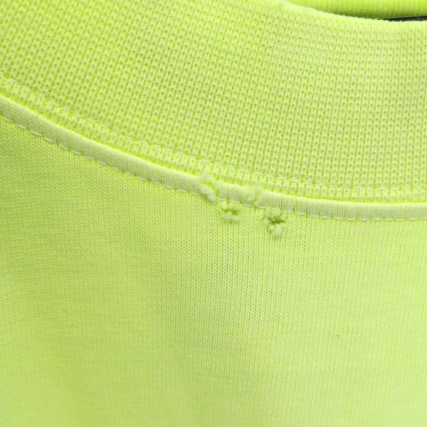 ■採寸#S 着丈75cm 肩幅110cm B118cm 袖丈26cm■素材コットン100%■コメントバレンシアガからダメージ加工が施された黄色いTシャツが入荷しました。前身頃に数か所薄い小さな汚れが見受けられ、前身頃の右腹部にも薄い汚れが見られます。全体的にダメージ加工が施されたお品物になりますが、左肩後ろ襟周り、裾、袖口等に破れ加工が特に見られます。お色目もぼかしの様な色褪せ加工の様な雰囲気もあります。お気軽にお問い合わせください。