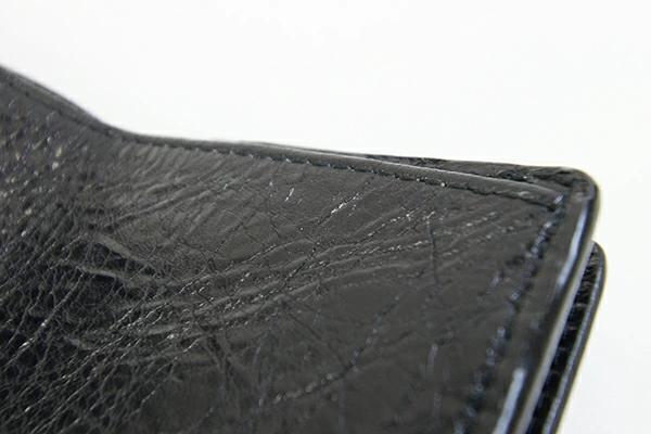 | 状態 | 外側:フチ周りに薄スレあり。 内側:札入れの入口部分にスレあり。小銭入れ、札入れ内のキャンバス地に薄スレ、薄汚れあり。 金具:薄キズ、所々薄っすら色落ちあり。 |