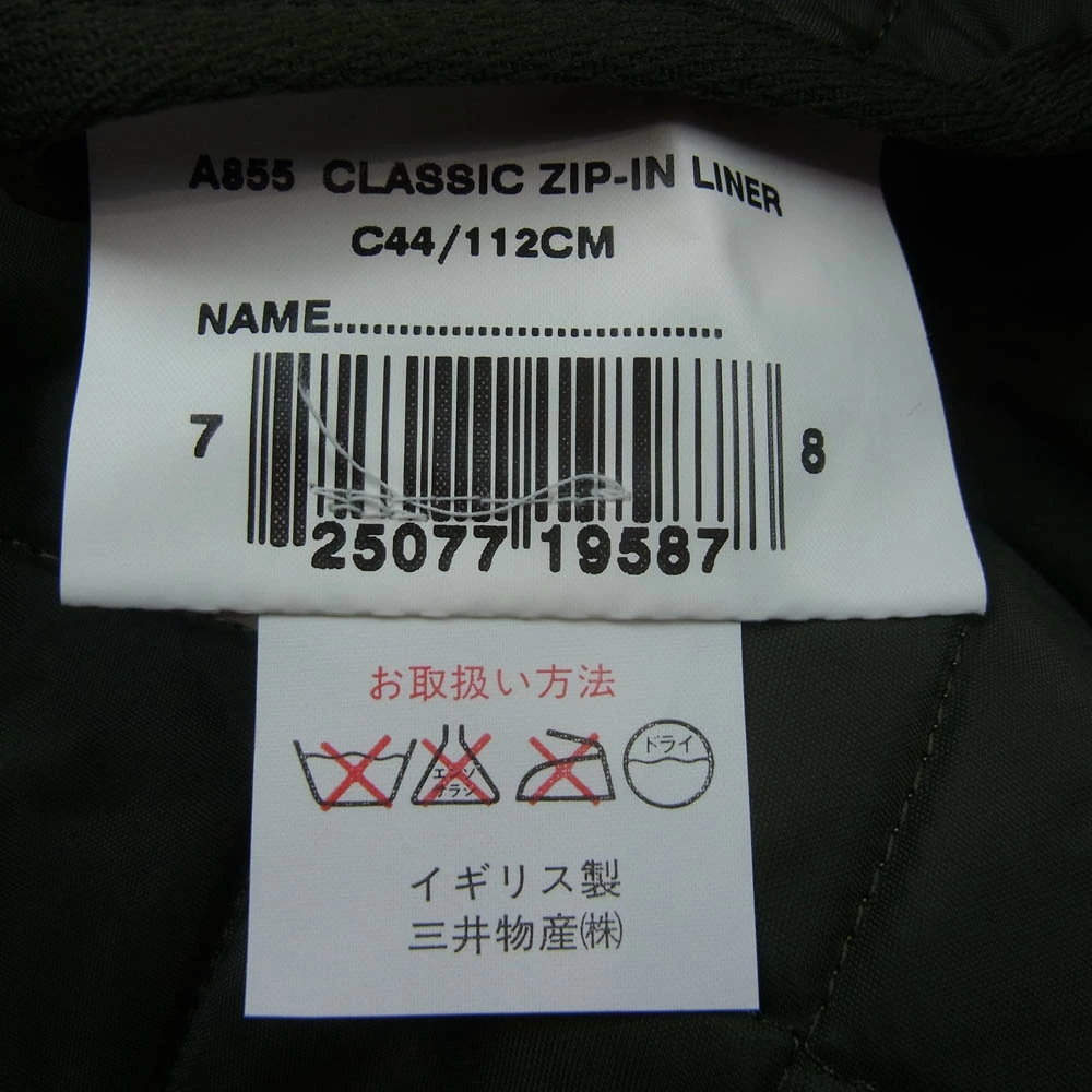 商品名25077 英国製 CLASSIC ZIP IN LINER クラシックジップインライナー キルティング ライナー ベスト