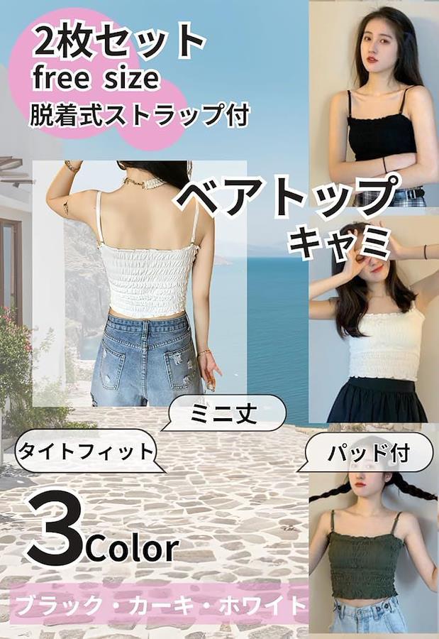 チラ見せがかわいくなるようなブラキャミ(取り外し可能なパッド付)の2枚セットです。