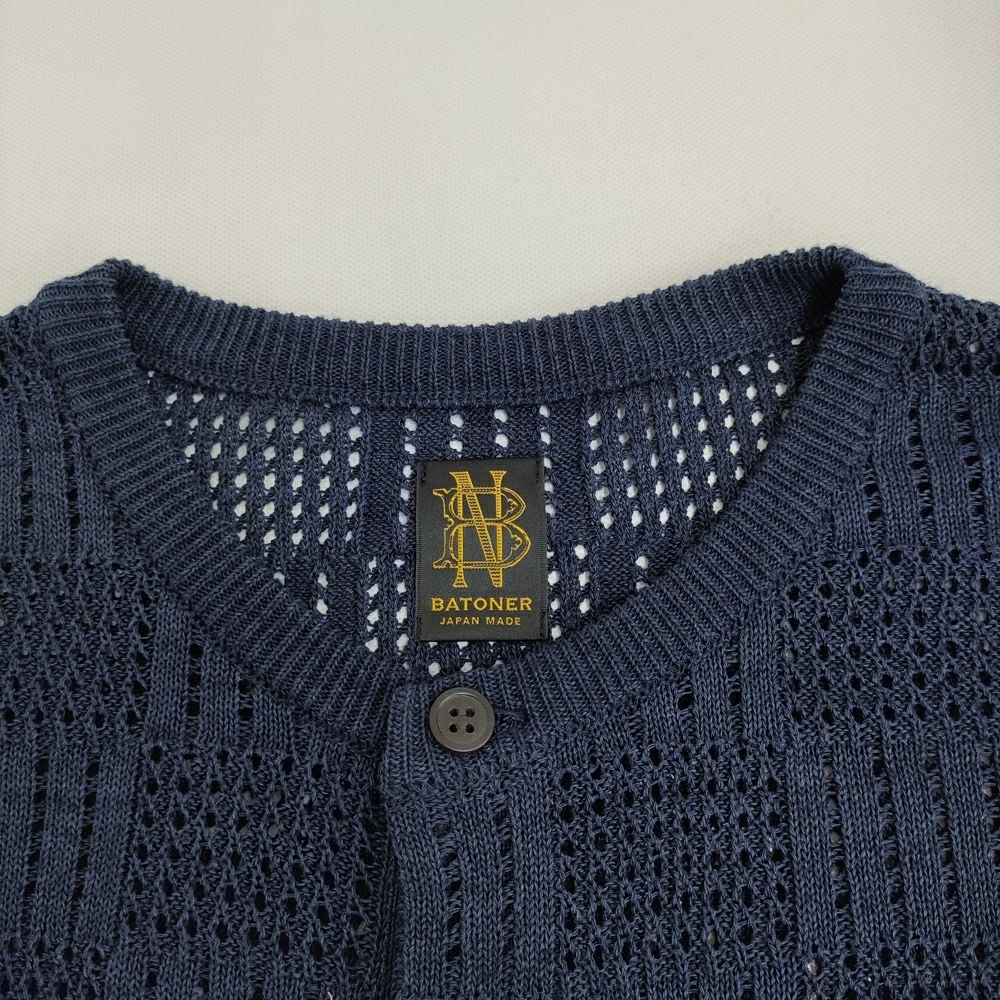 BATONER Men's Knit Henley Polo Shirt, Made in Japan, Size 3, Navy, 2024 Spring/Summer Collection, BN-24SM-079, Pre-owned, Item #5-0531M