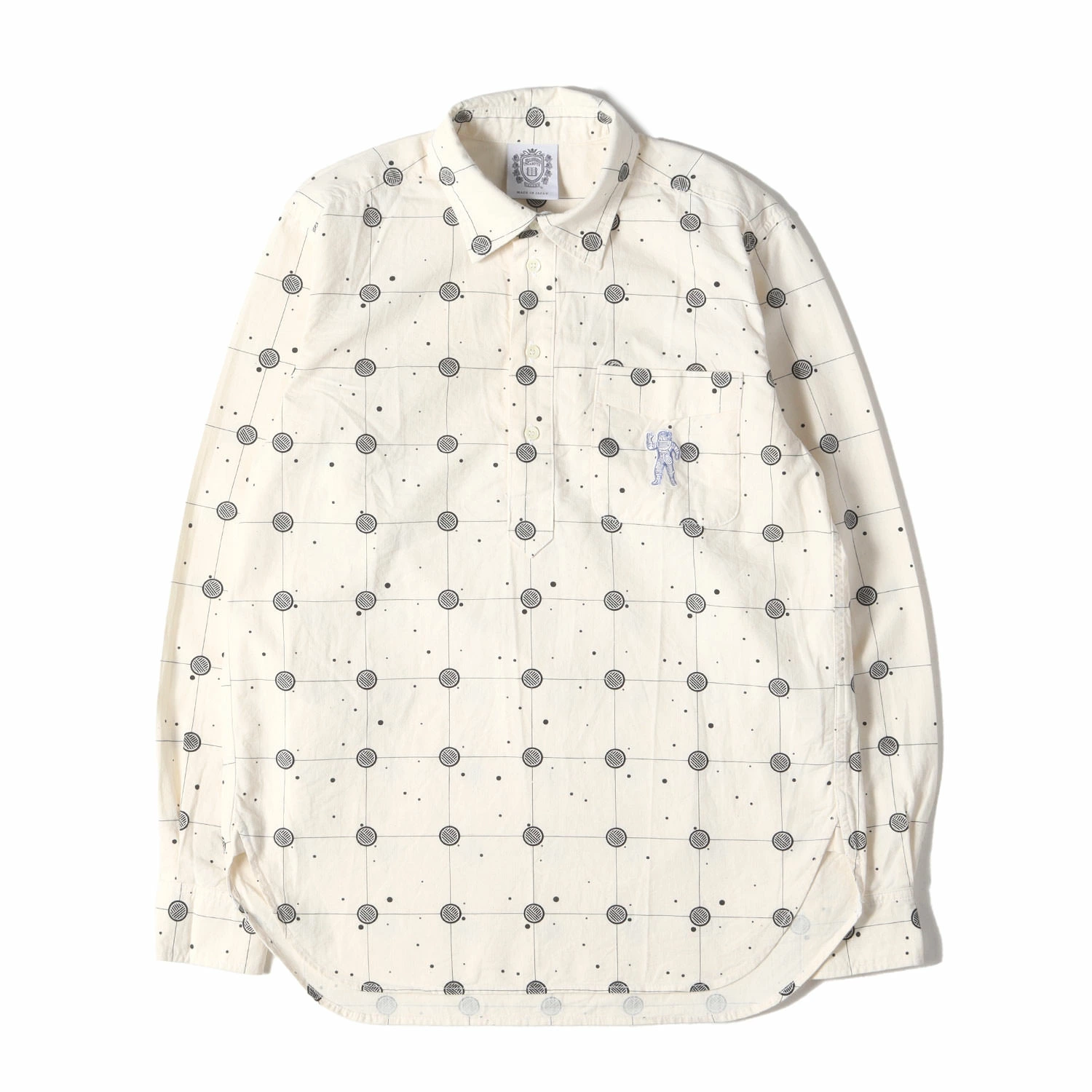 | 商品説明 | ドライな質感のコットン生地に総柄プリントをあしらったハーフボタンプルオーバーシャツになります。 |