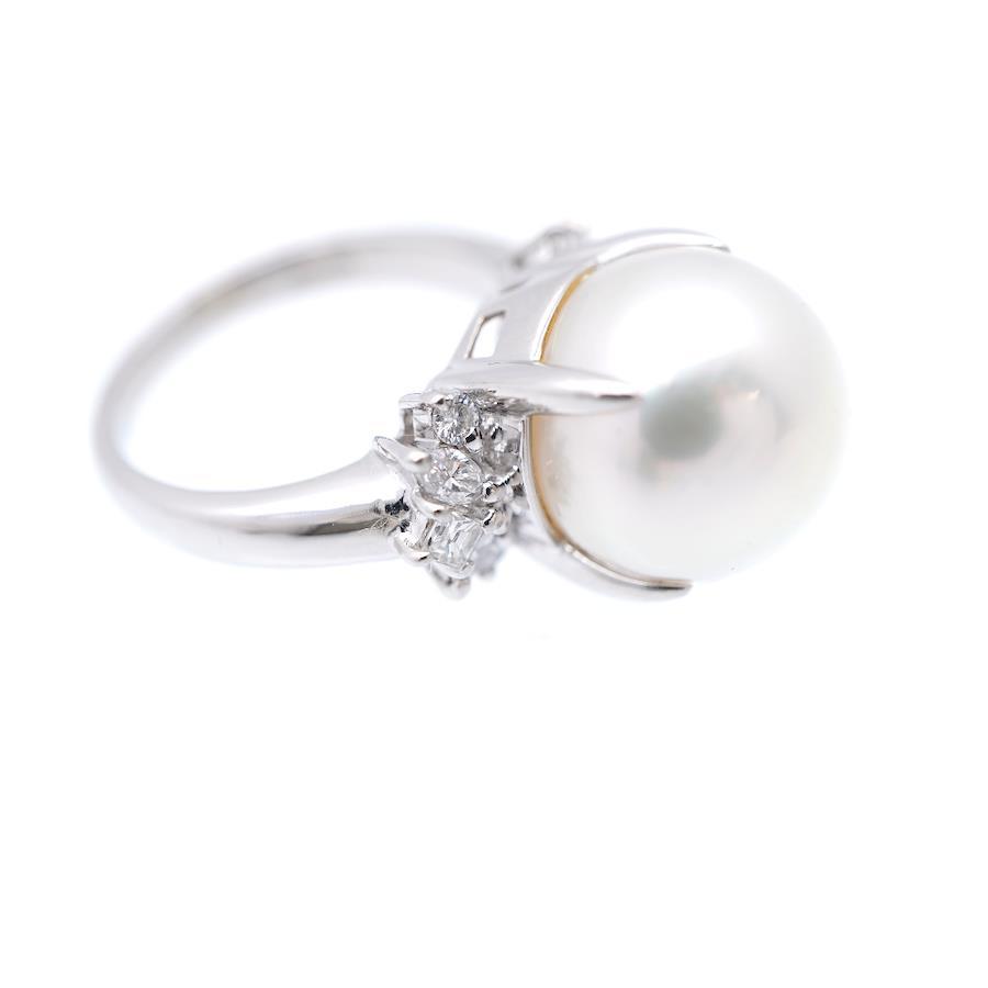 Beautiful 12mm South Sea Pearl / Diamond 0.43ct Pt900 Ring White Pearl / Platinum / Diamond Size 13 Ring 0061 Jewelry [Used]